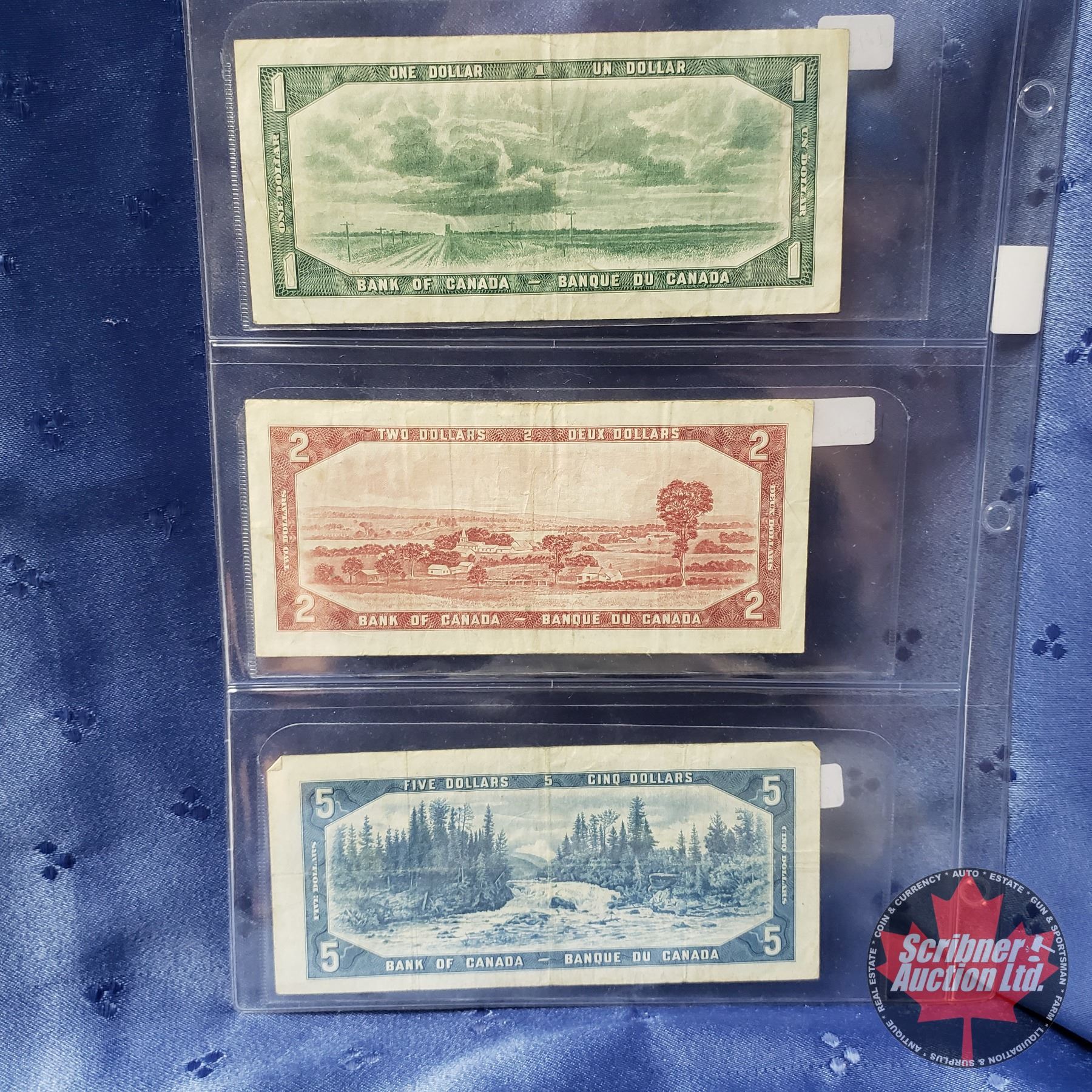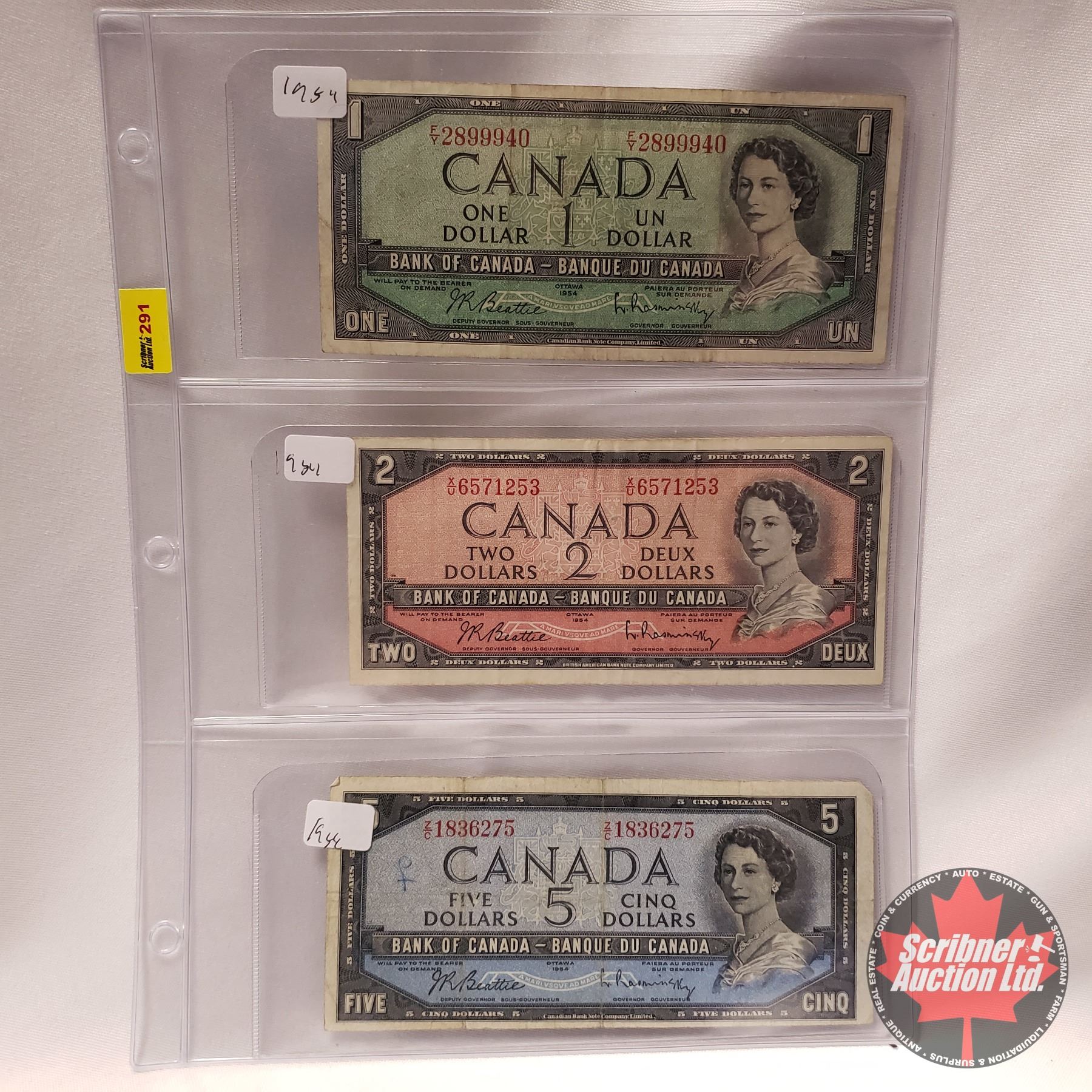 Canada 1954 Bills (3): $1 ; $2 ; $5 (See Pics for Signatures/Serial Numbers)