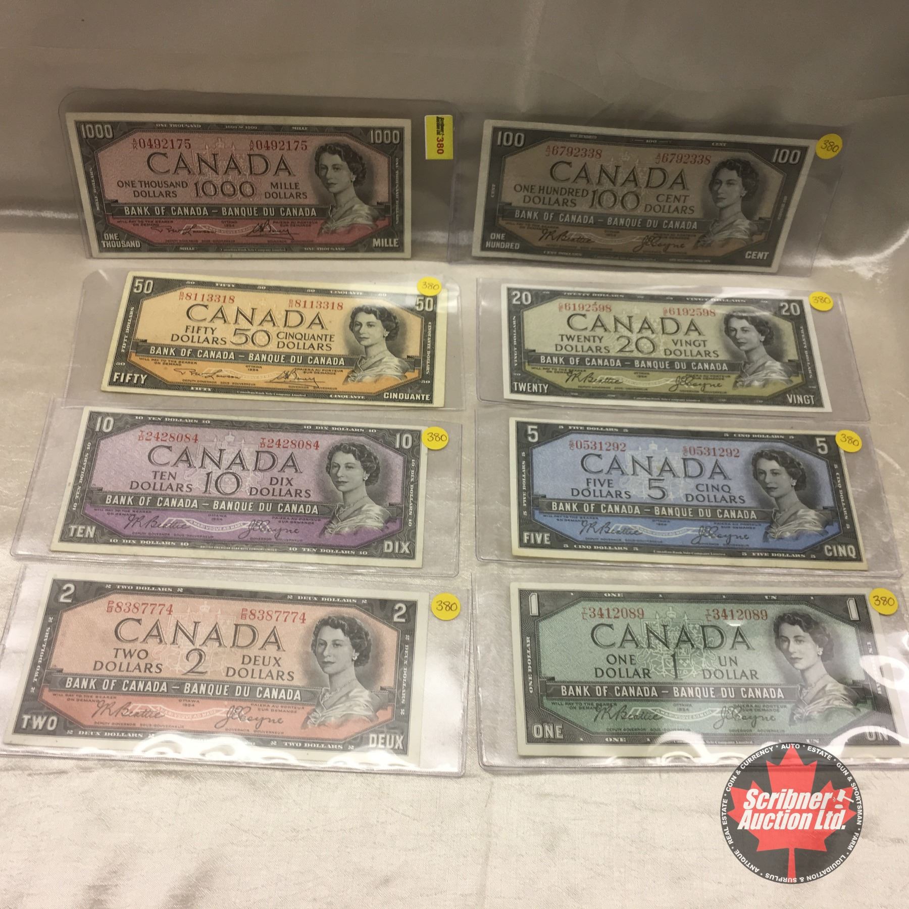 Canada 1954 SET of 8 Bills!!!! $1, $2, $5, $10, $20, $50, $100, $1000