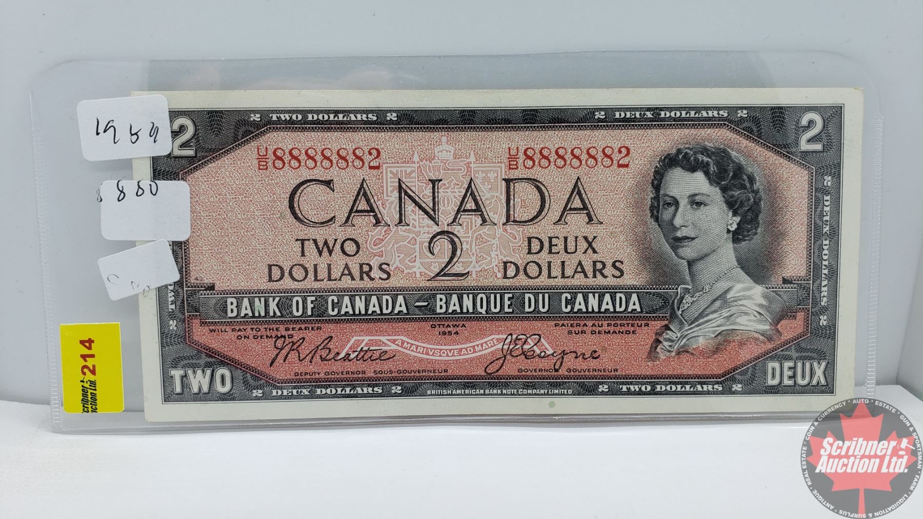 Canada $2 Bill 1954 (Near Solid S/N#) (Beattie/Coyne UB8888882) (See Pics for Signatures/Serial Numbers)