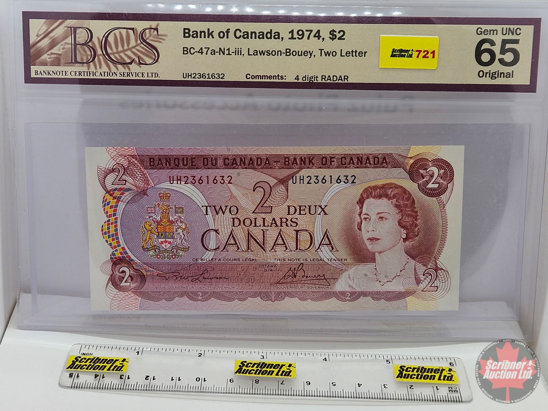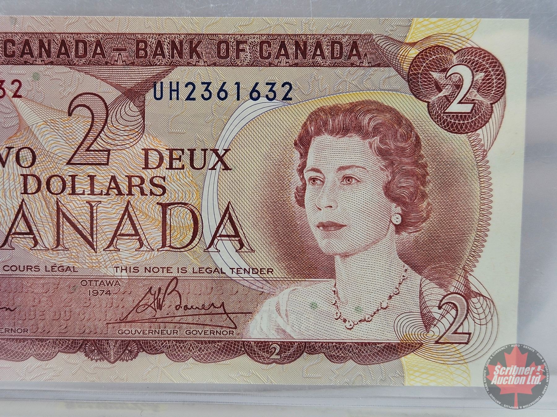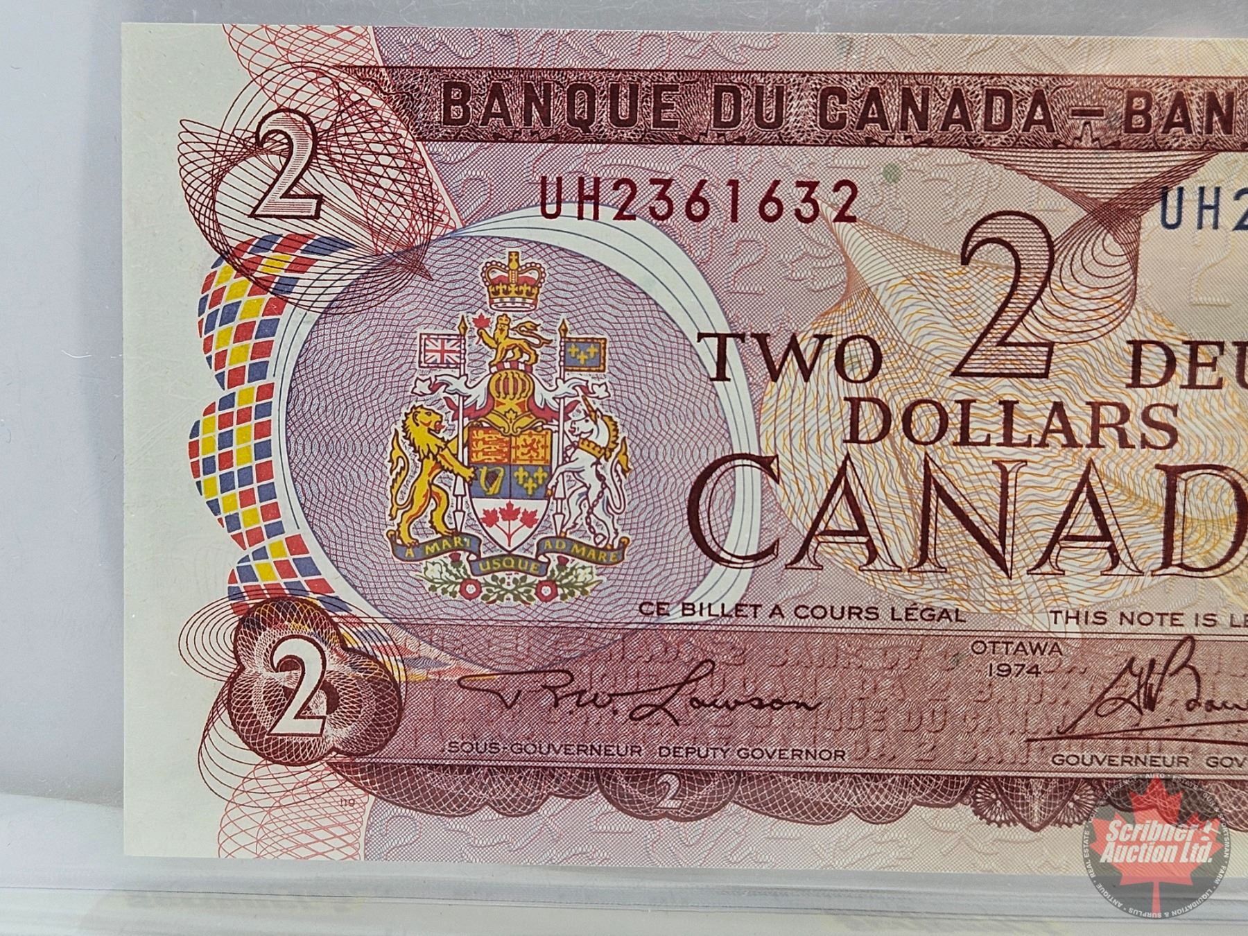 Canada $2 Bill 1974 : Lawson/Bouey #UH2361632 (BCS Cert: Gem UNC 65 Original)