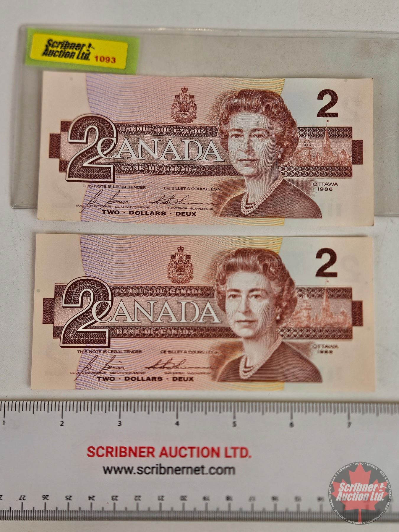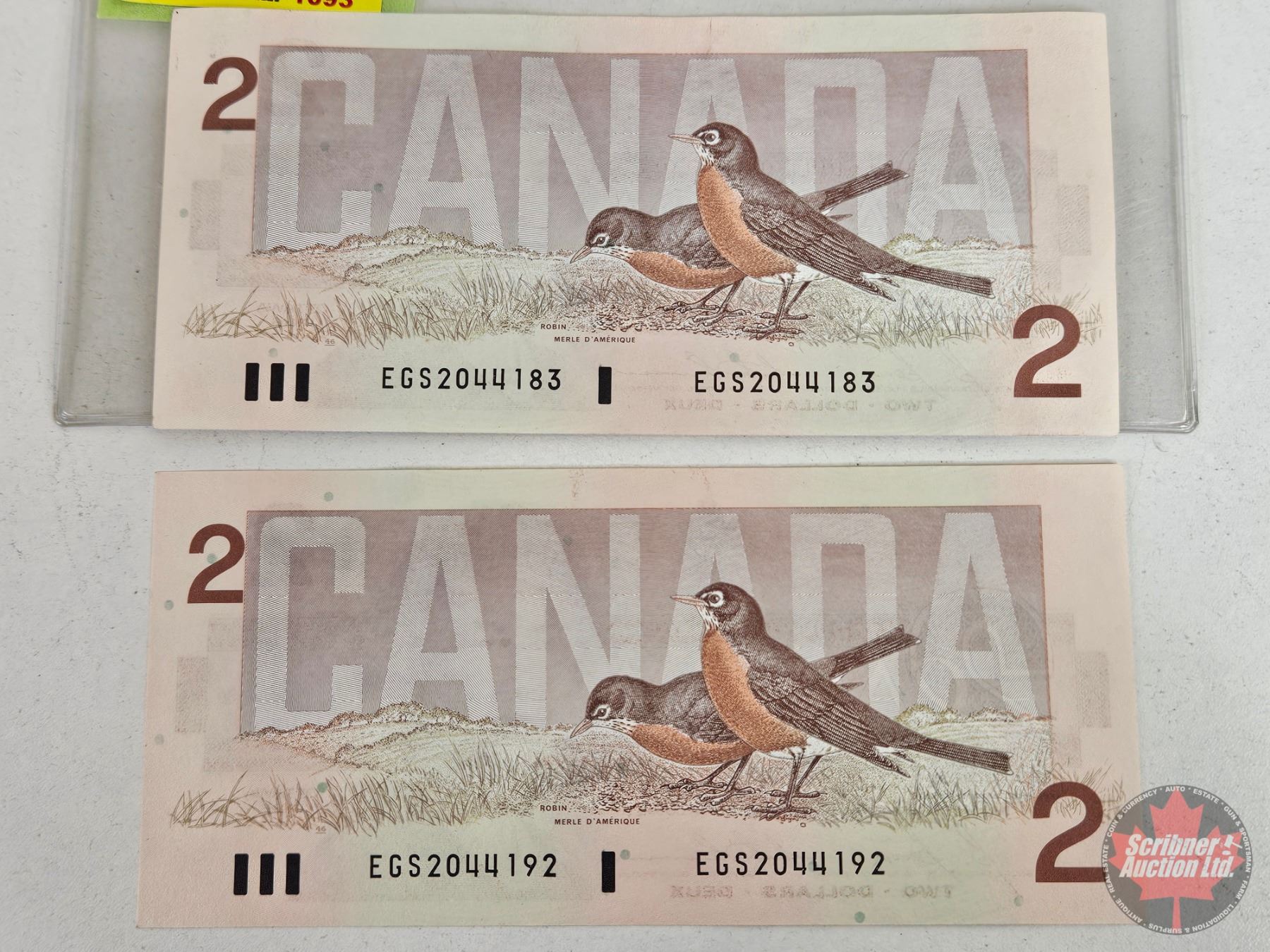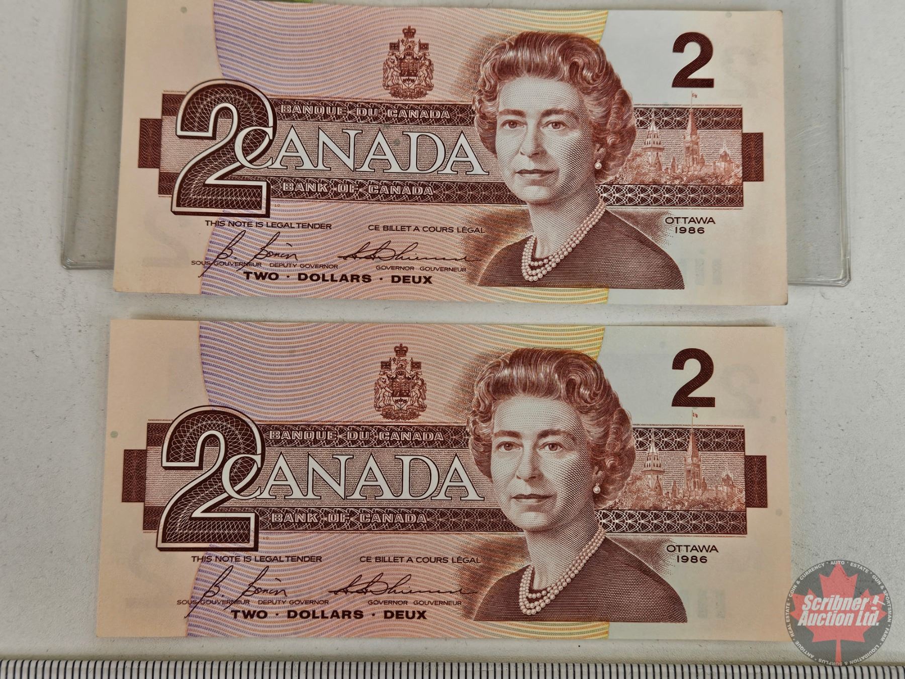 Canada $2 Bills 1986 (2) : Bonin/Thiessen #EGS2044192 & EGS2044183