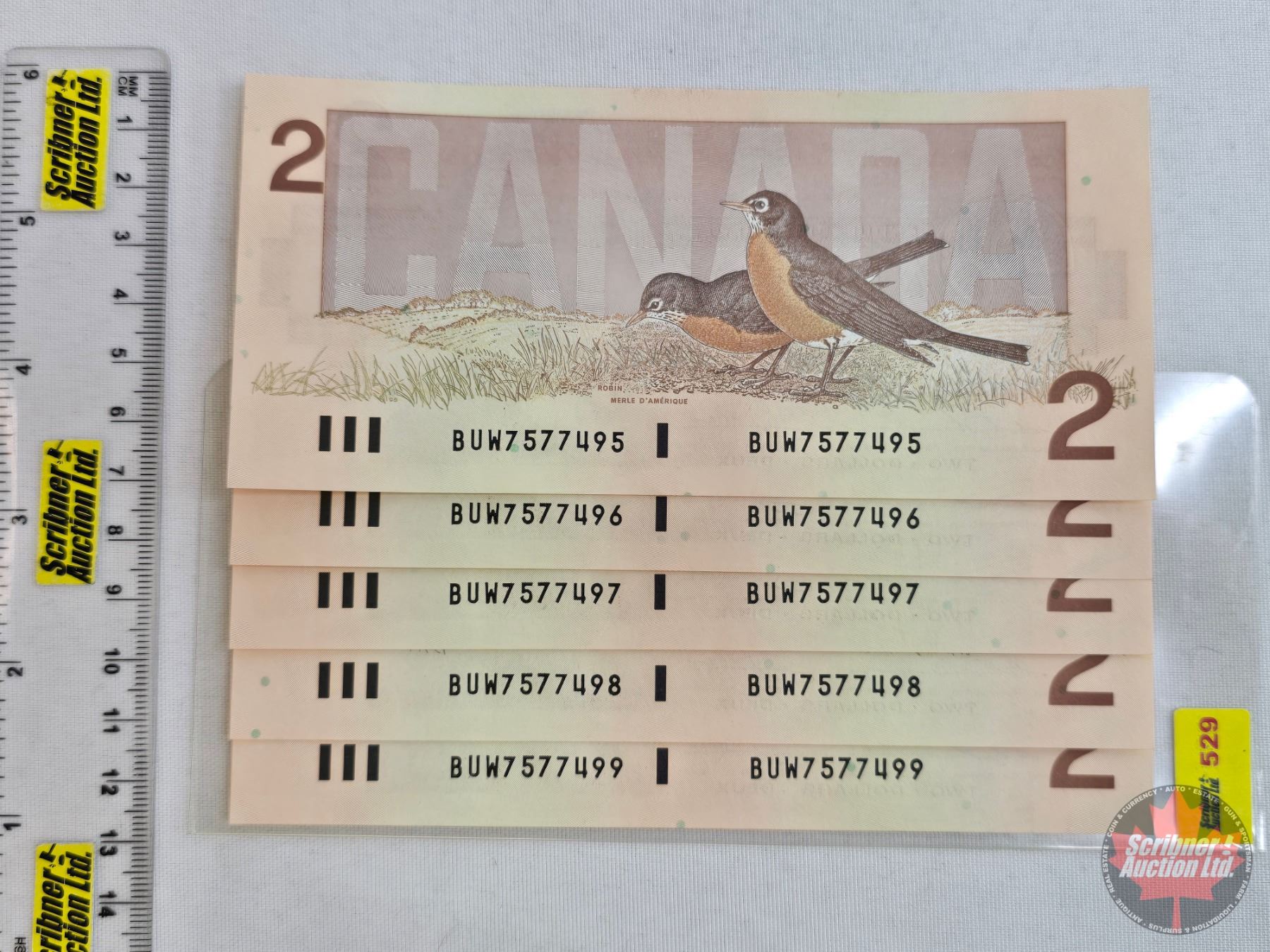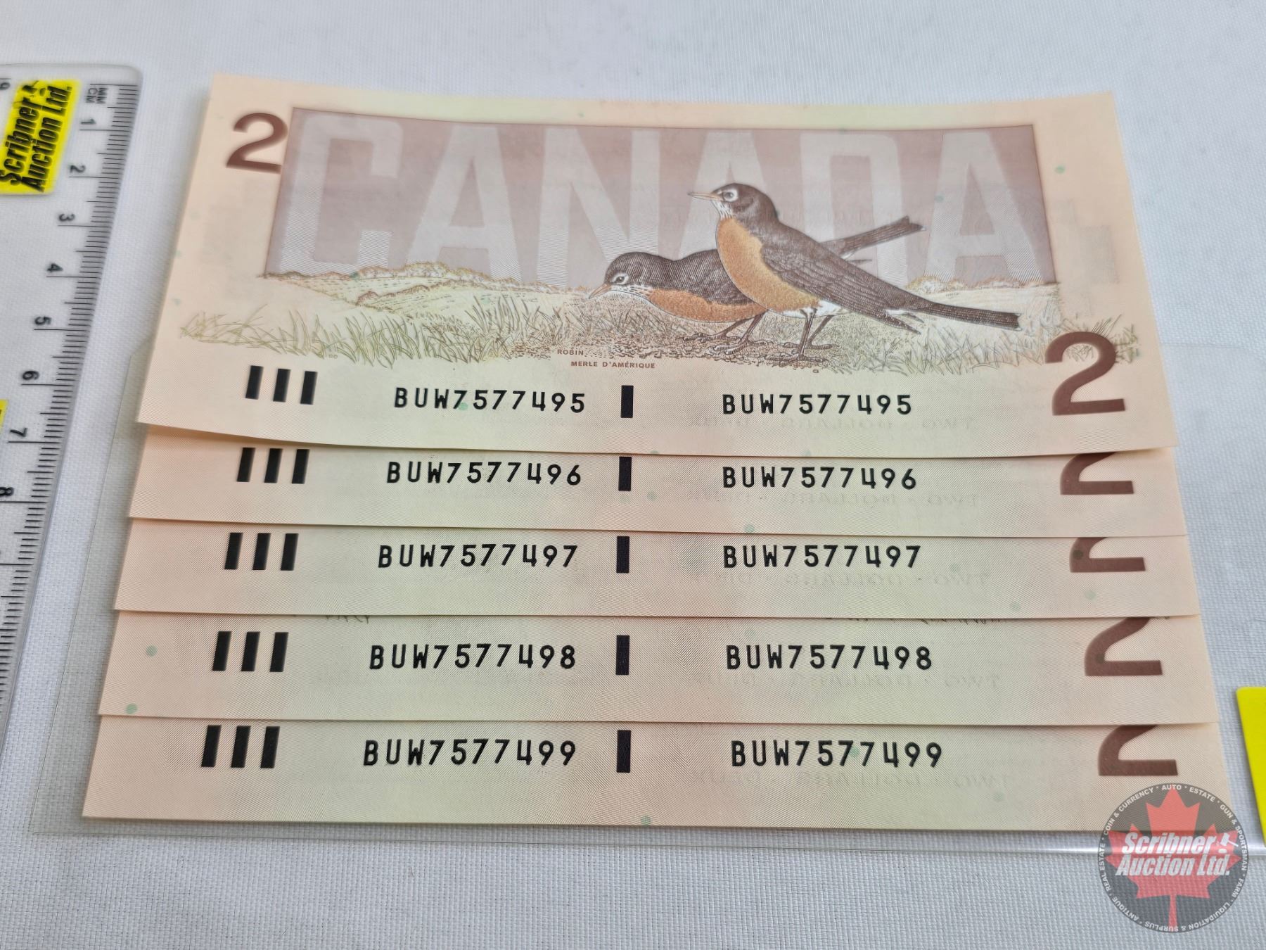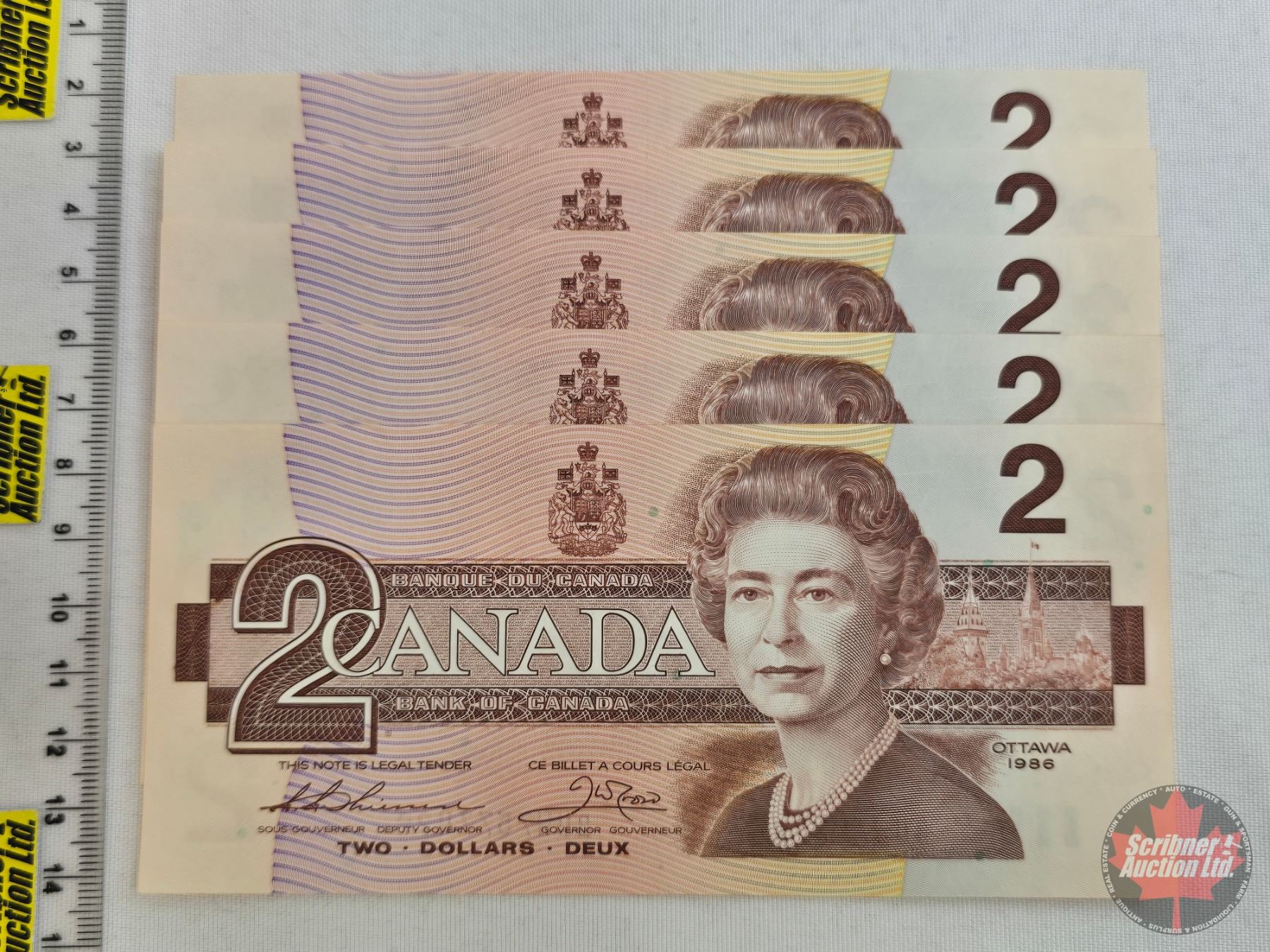 Canada $2 Bills 1986 (5 Consecutive) : Thiessen/Crow #BUW7577495 - 7577499