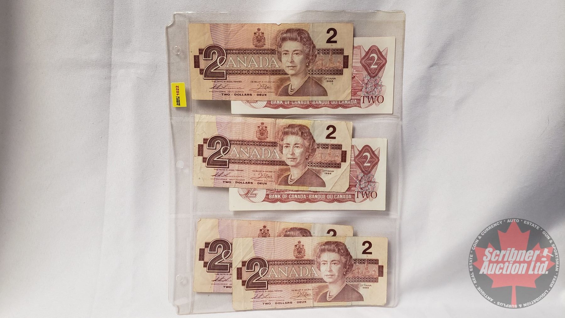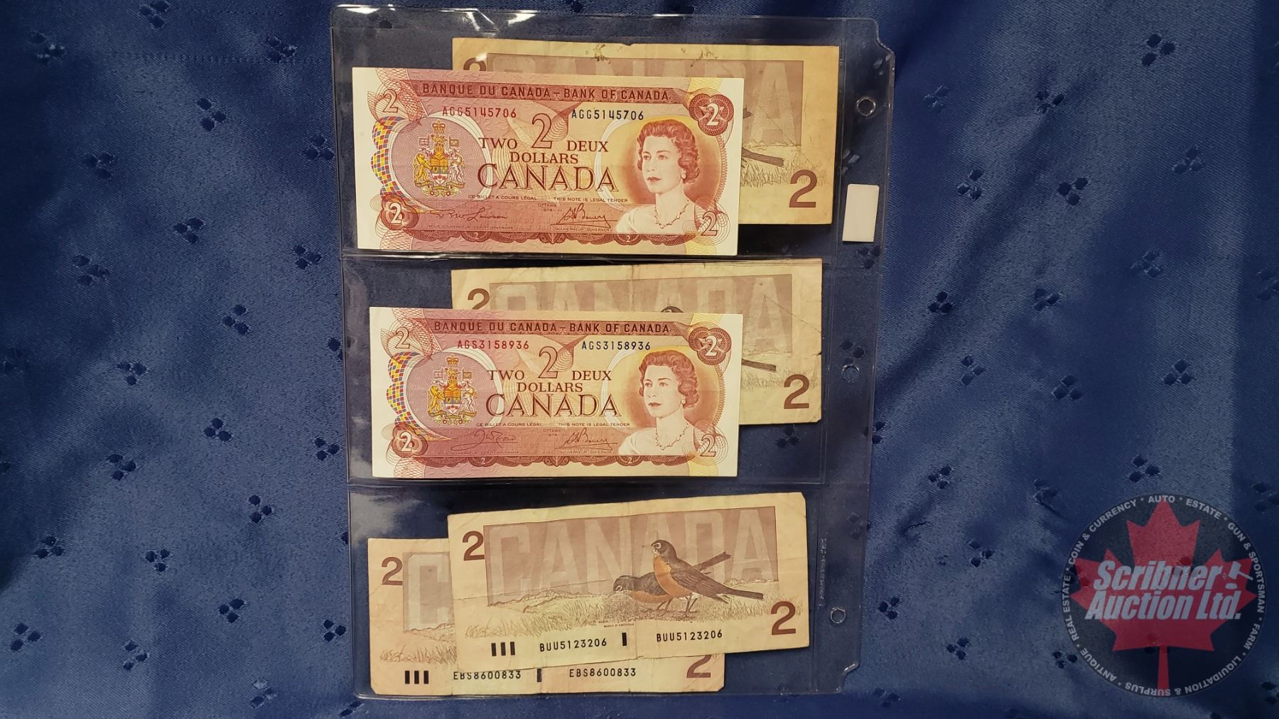 Canada $2 Bills (6): 1986(4) ; 1974 (2) (See Pics for Signatures & Serial Numbers)