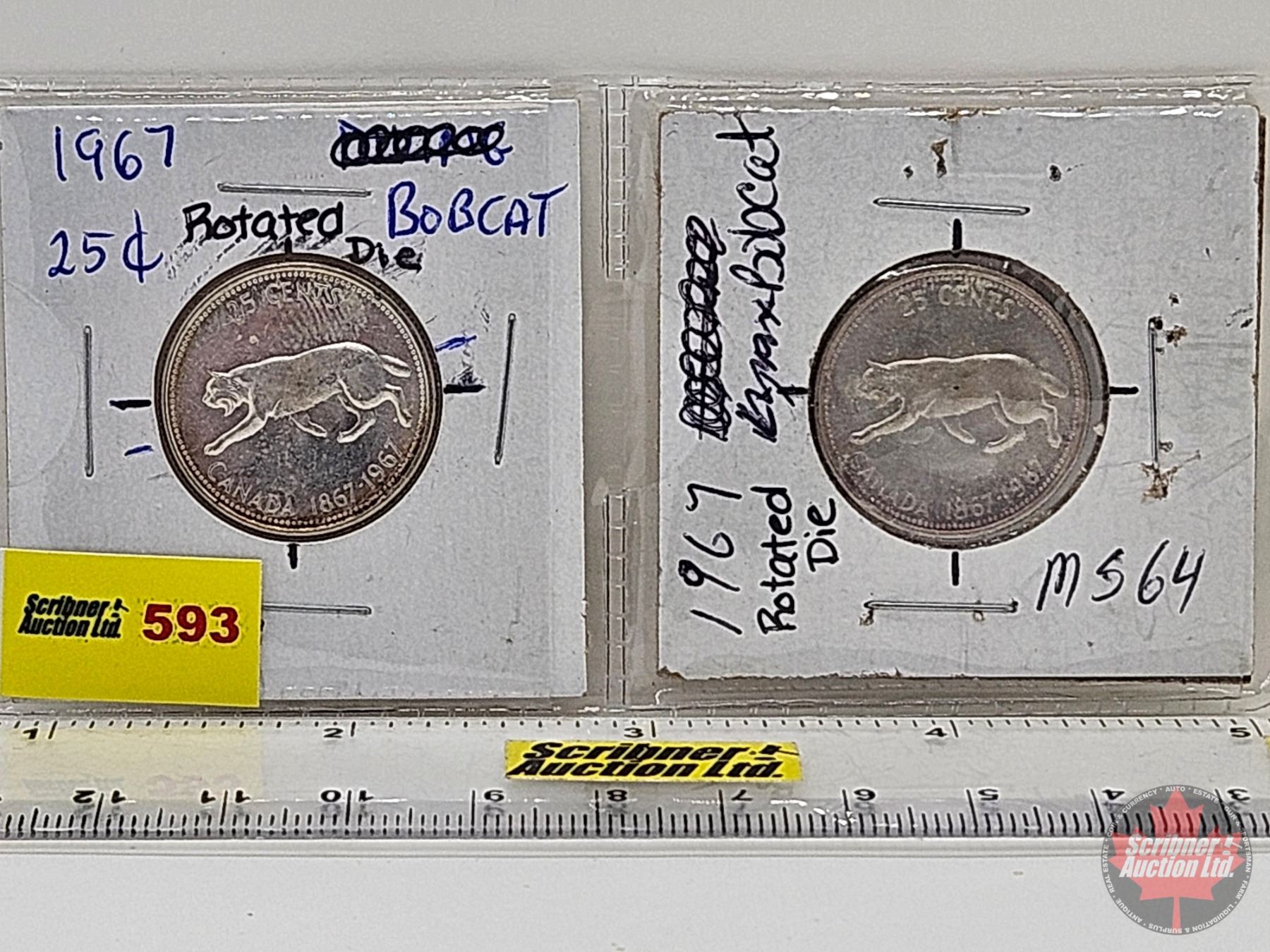 Canada (2) Twenty-Five Cent 1867-1967 (Consignor Tag: Rotated Die)