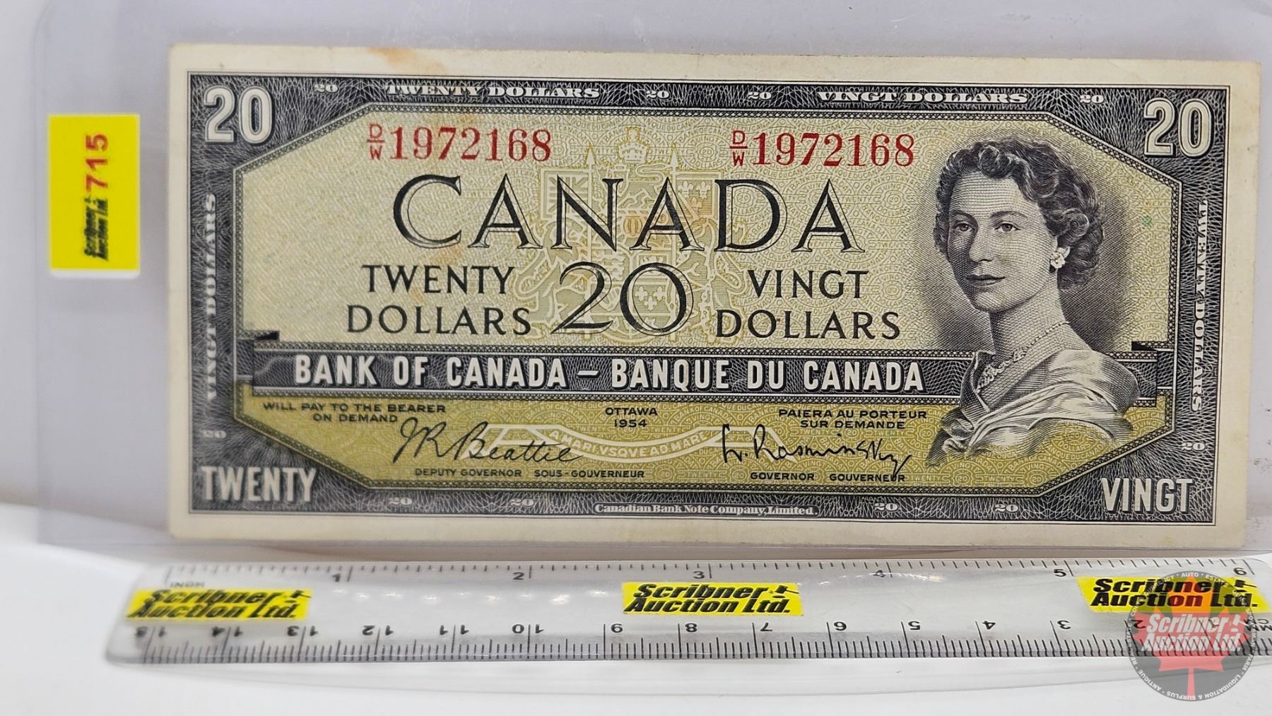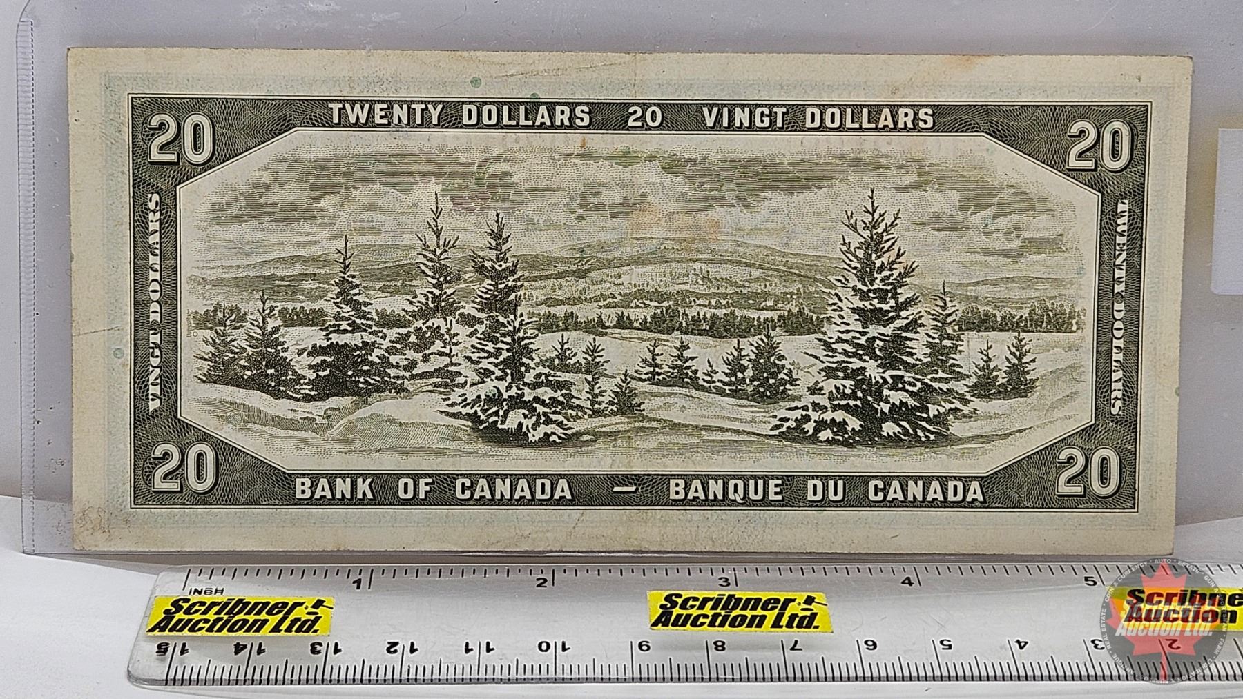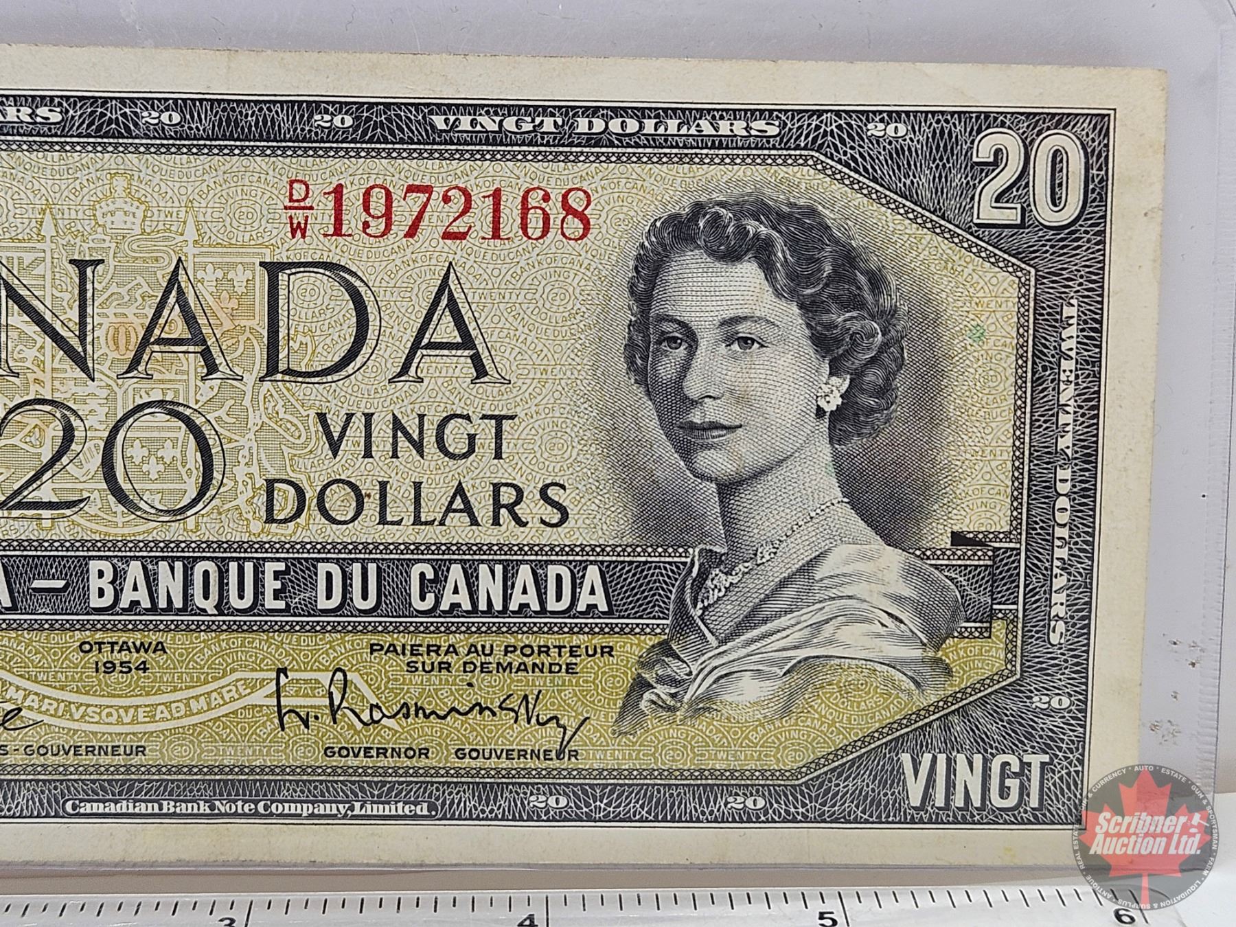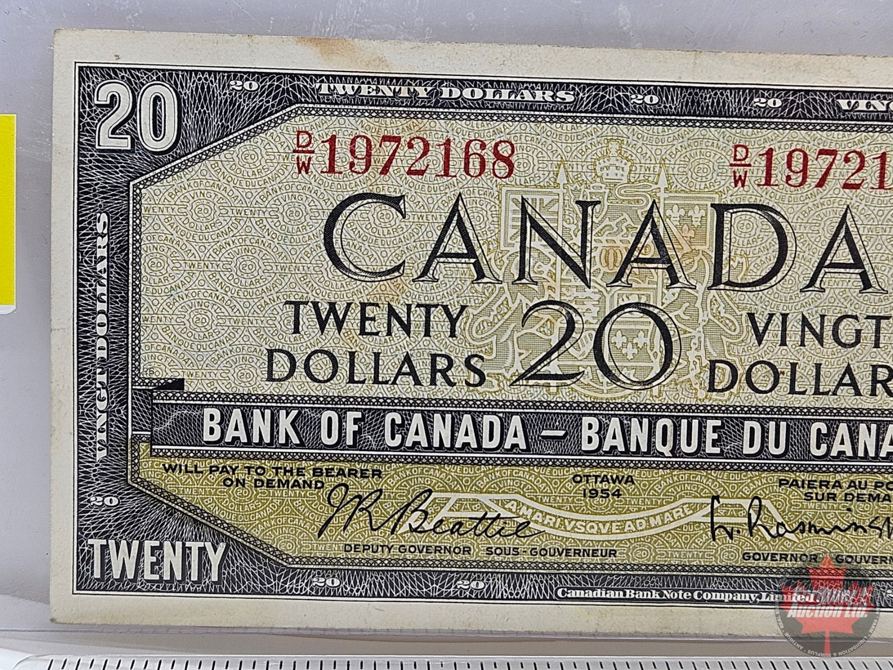 Canada $20 Bill 1954 : Beattie/Rasminsky #DW1972168 (See Pictures for Varieties, Conditions, Serial