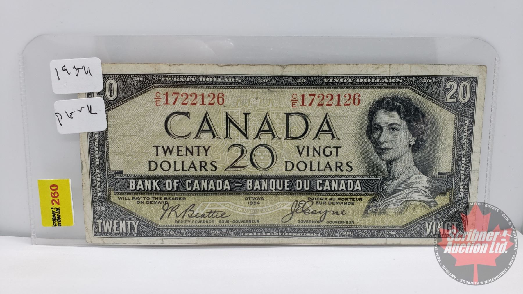 Canada $20 Bill 1954 DF : Beattie/Coyne S/N#CE1722126