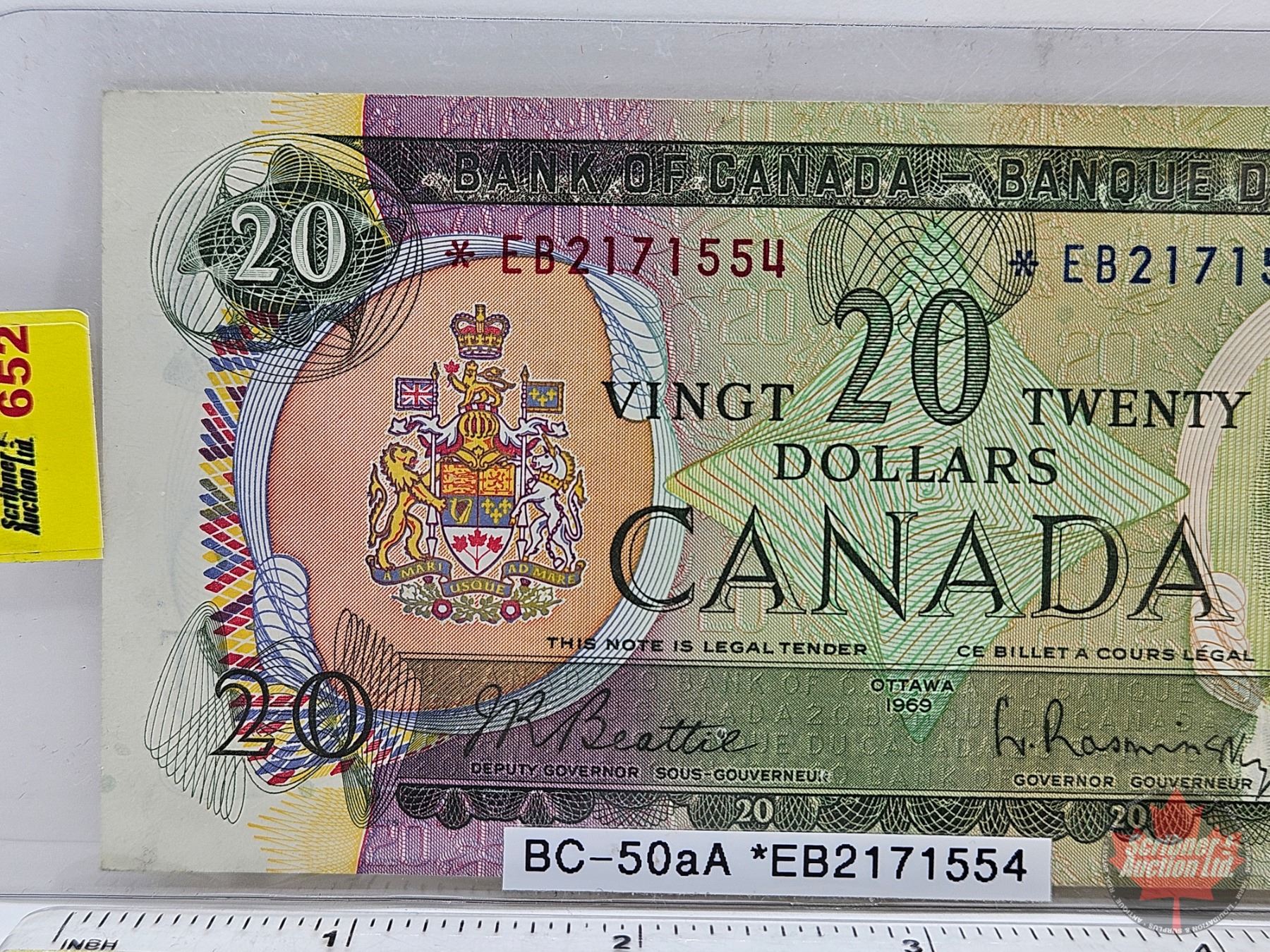 Canada $20 Bill 1969 *Replacement : Beattie/Rasminsky # *EB2171554