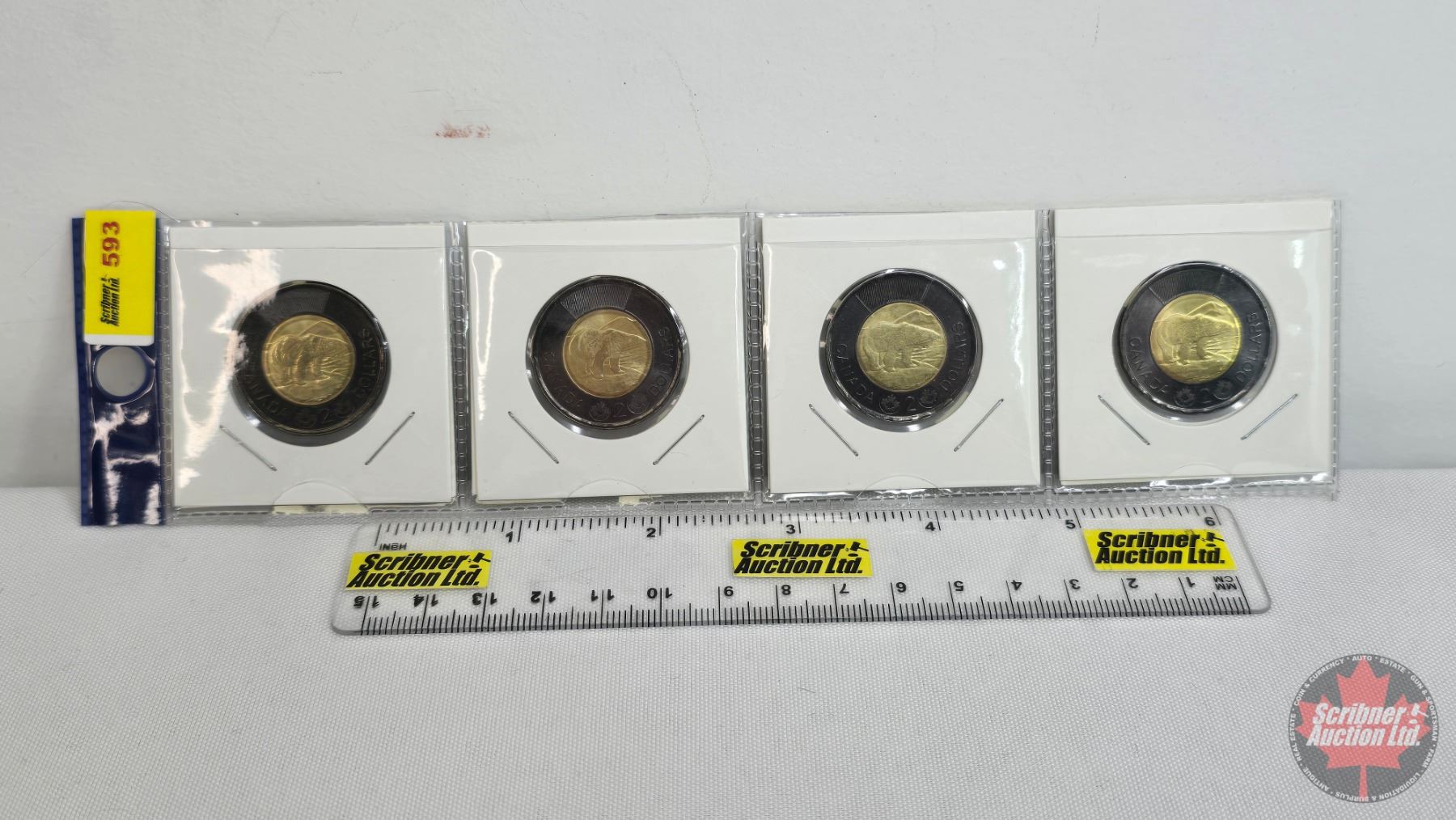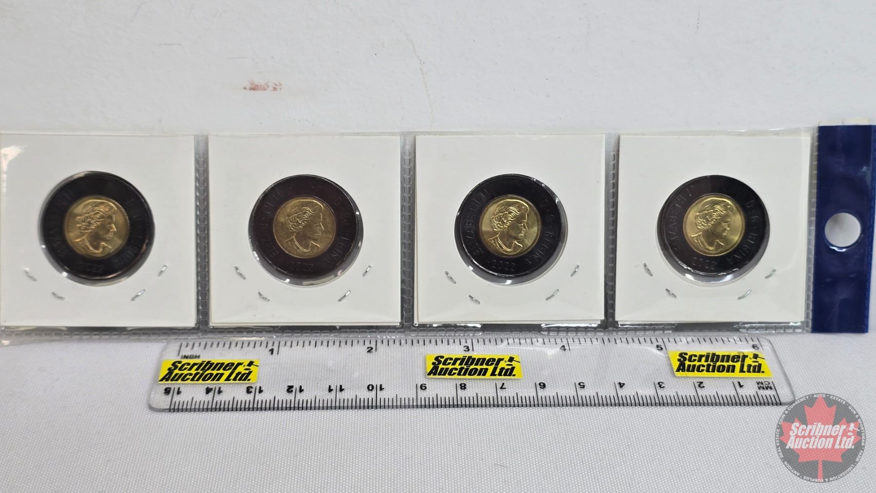 Canada 2022 Toonies (4) : Black Ring "Queen Elizabeth II Memorial" (SEE PICS!) (Listing & Descriptions are a GUIDE ONLY and are subject to changes, errors, additions or deletions. Please use the provided pictures to satisfy yourself to the Condition and/or Grades. Please Read & Understand All Terms & Conditions for this Auction Sale.)