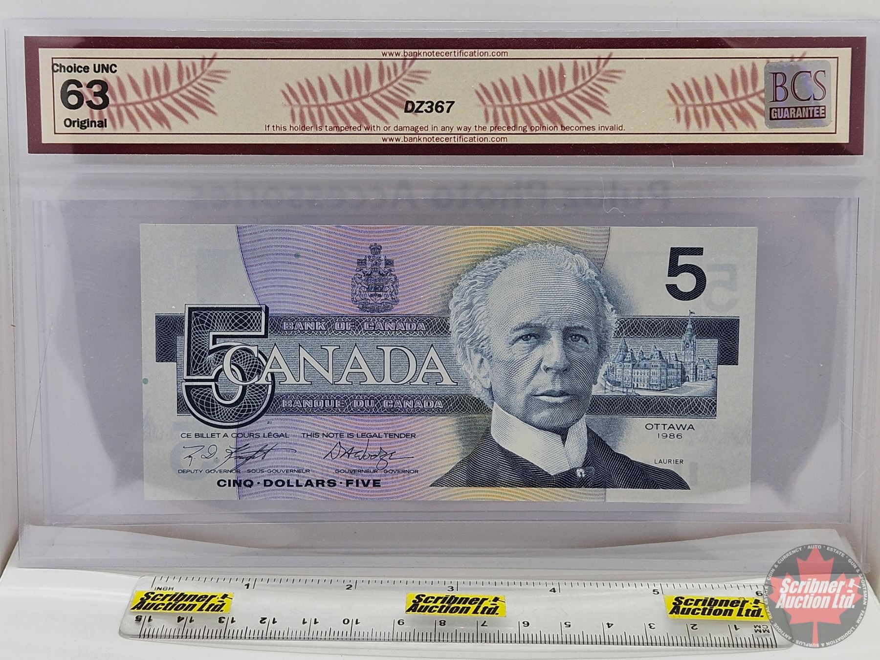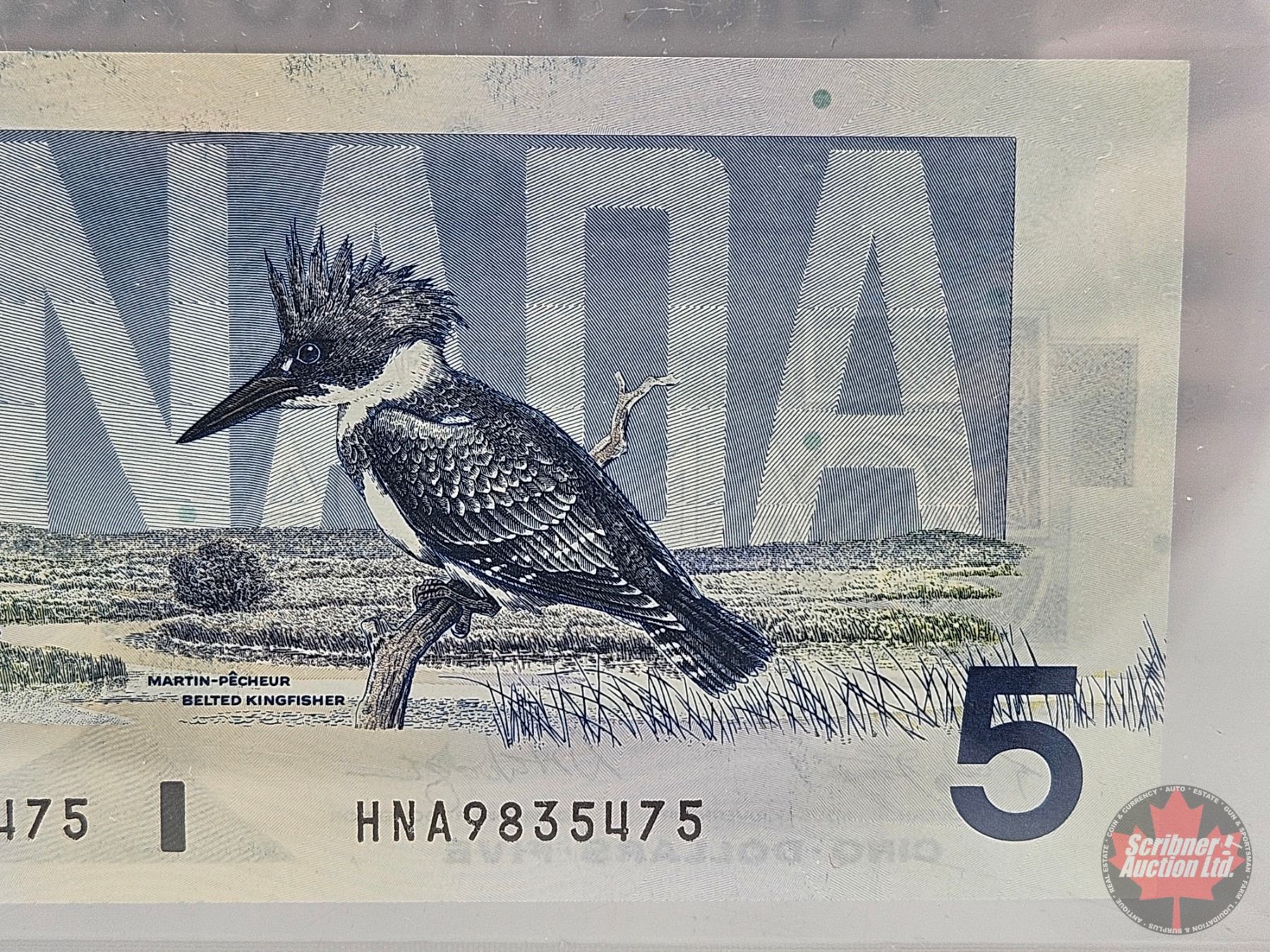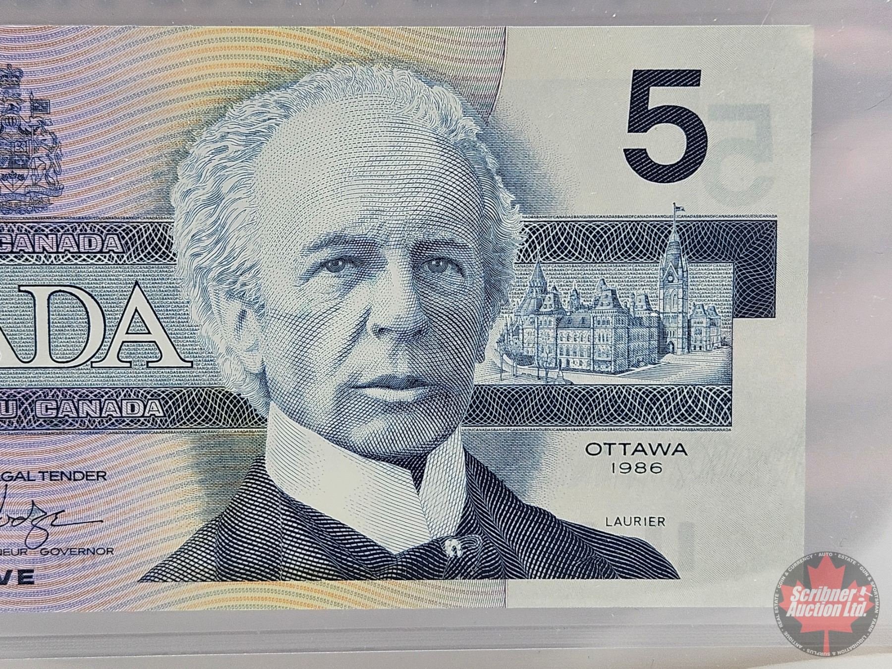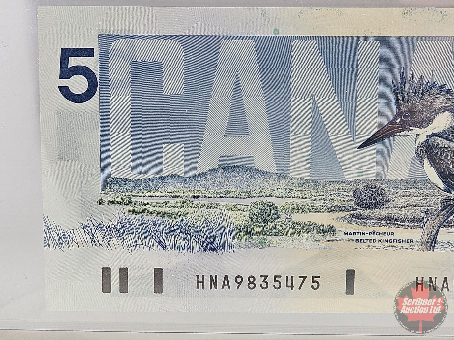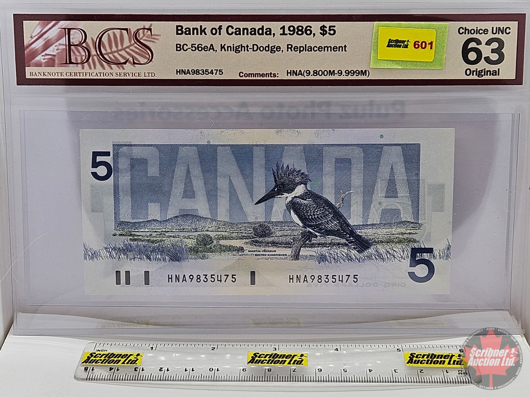 Canada $5 Bill 1986 "A" Replacement : Knight/Dodge #HNA9835475 (BCS Cert : Choice UNC 63 Original)