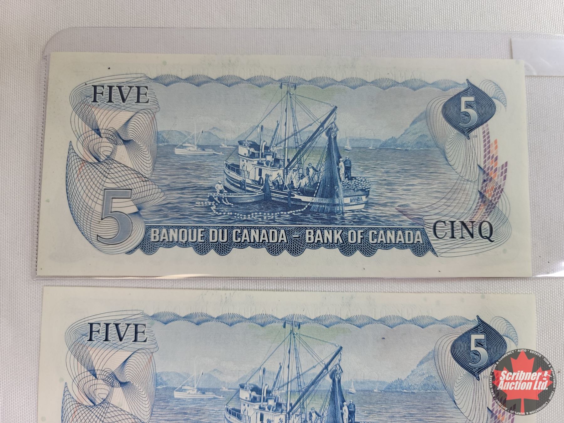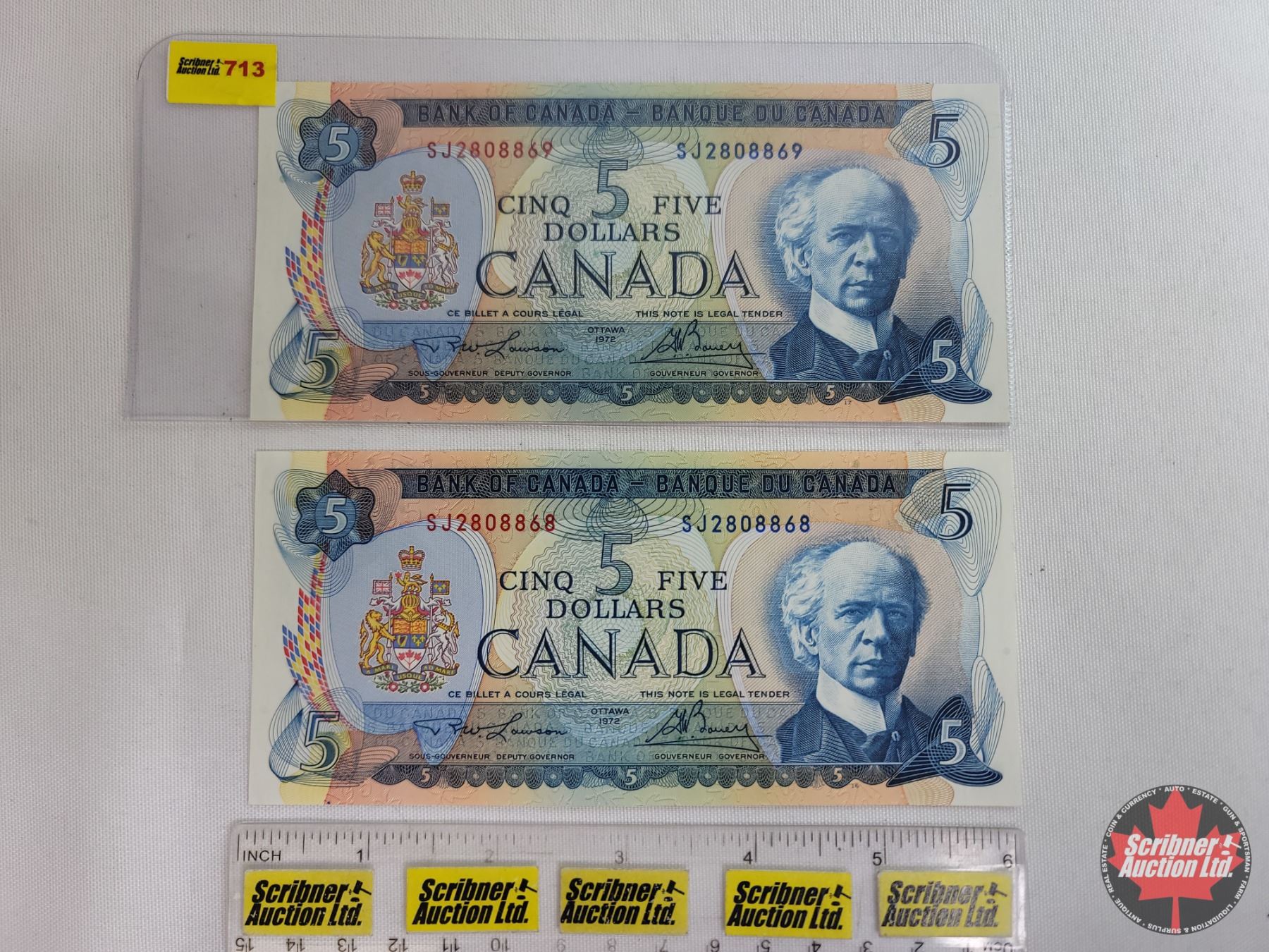Canada $5 Bills 1972 (2 Consecutive) : Lawson/Bouey #SJ2808868-869