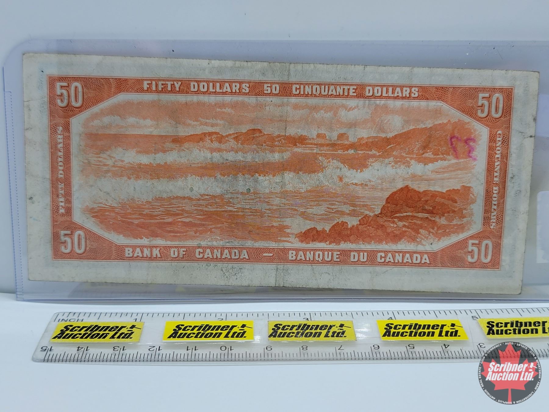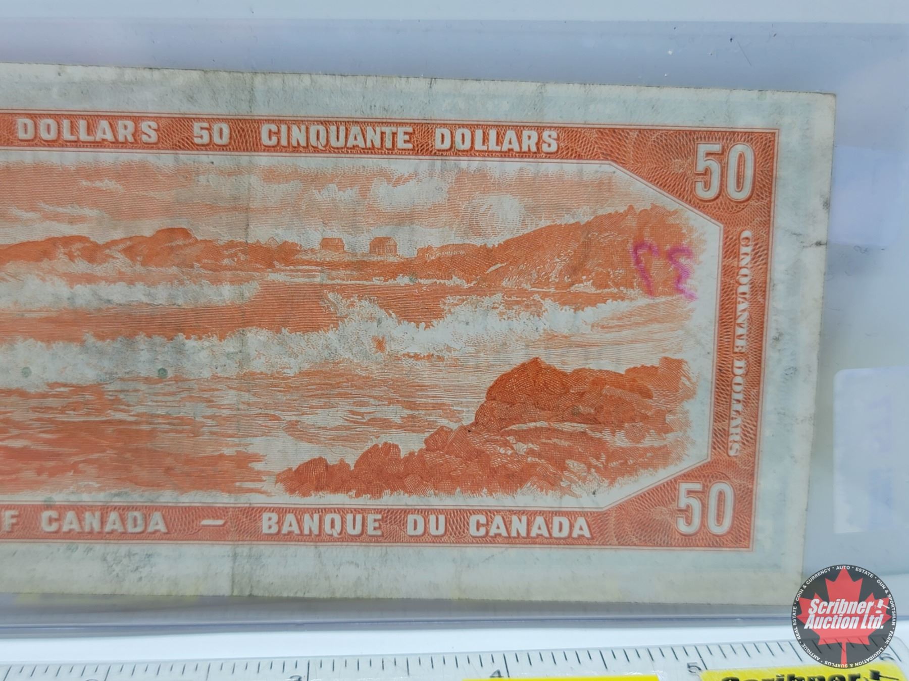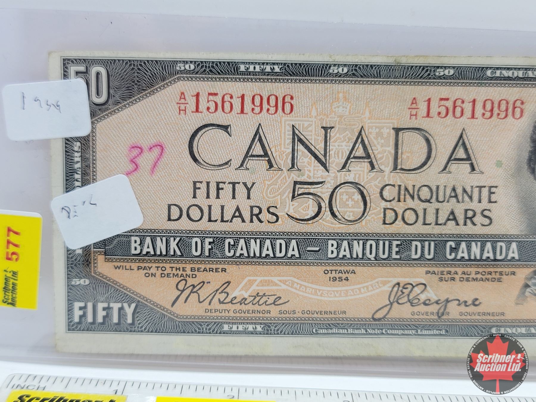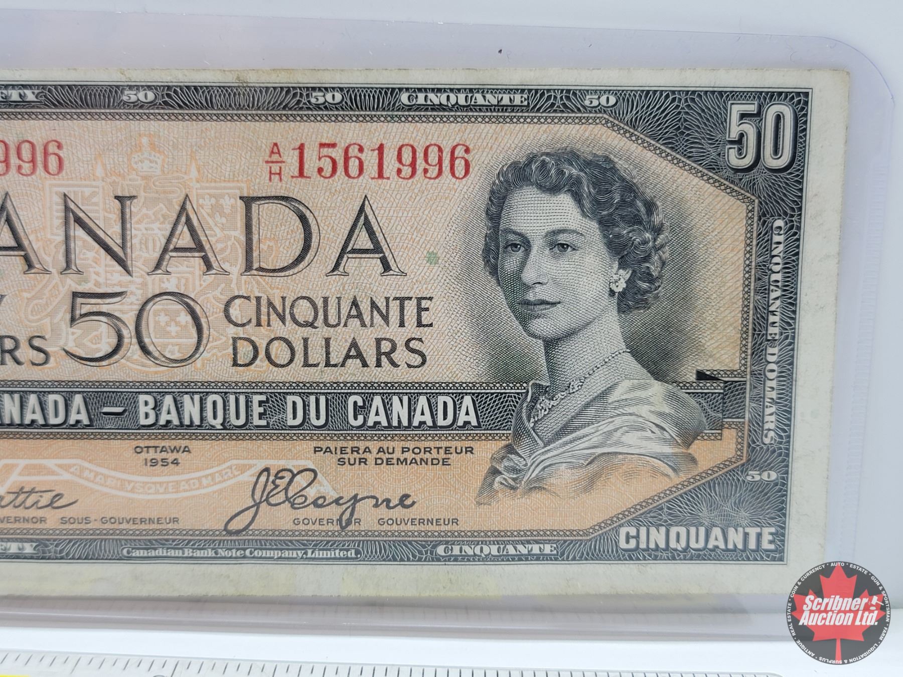 Canada $50 Bill 1954DF "Devil's Face" : Beattie/Coyne #AH1561996 (See Pics for Varieties, Conditions, Serial Numbers & Signatures)