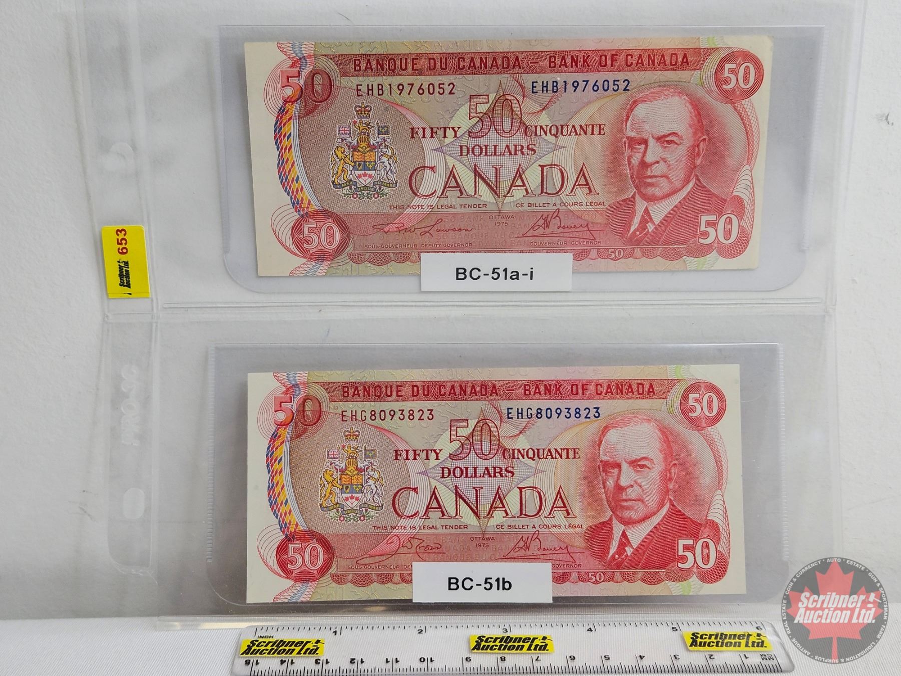 Canada $50 Bills 1975 "Musical Ride" (2):