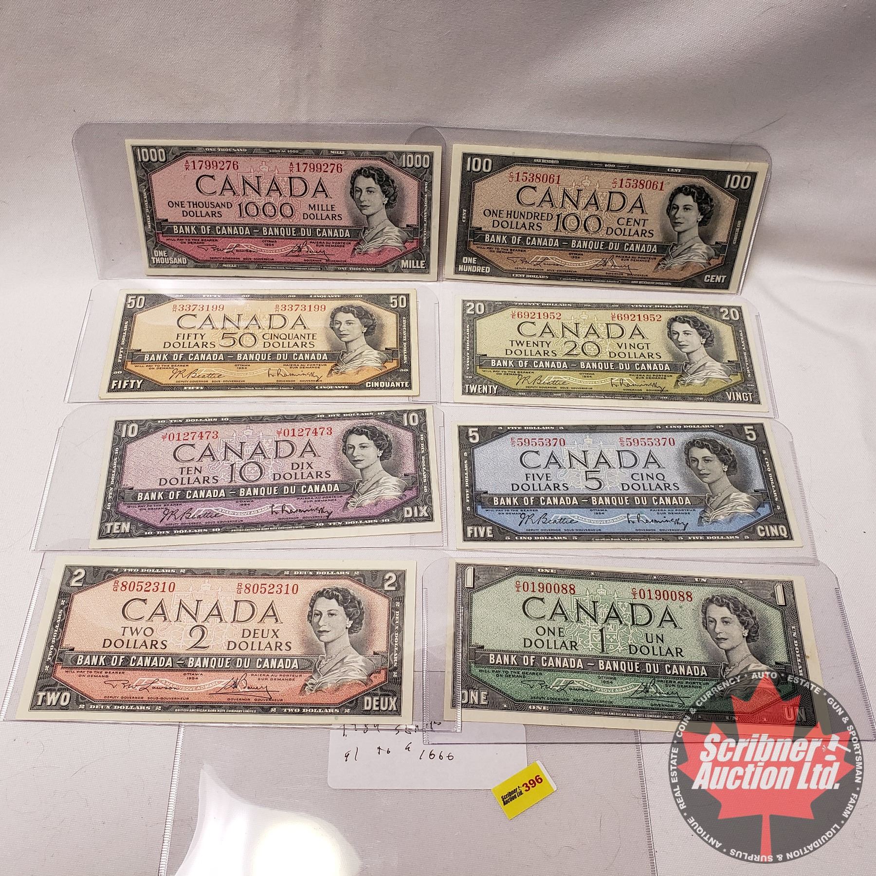 Canada Bills 1954 Series (8 Bills) : $1; $2; $5; $10; $20; $50; $100; $1000 (See Pics for Signatures/Serial Numbers)