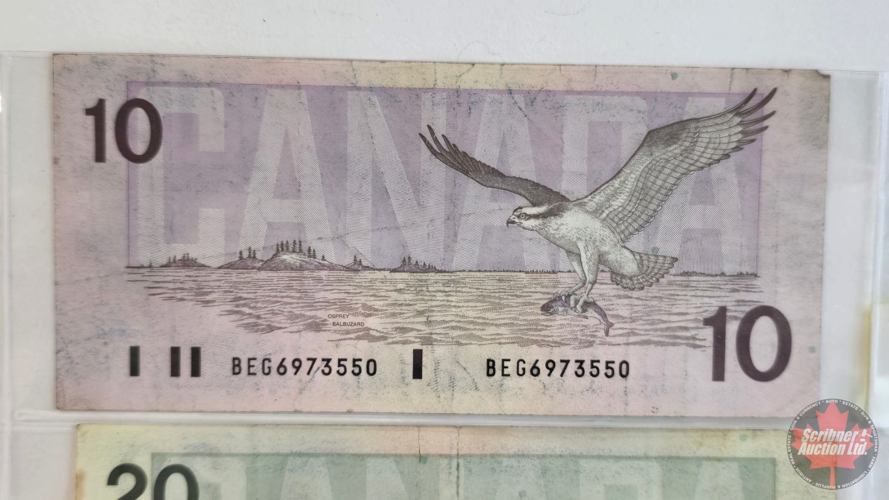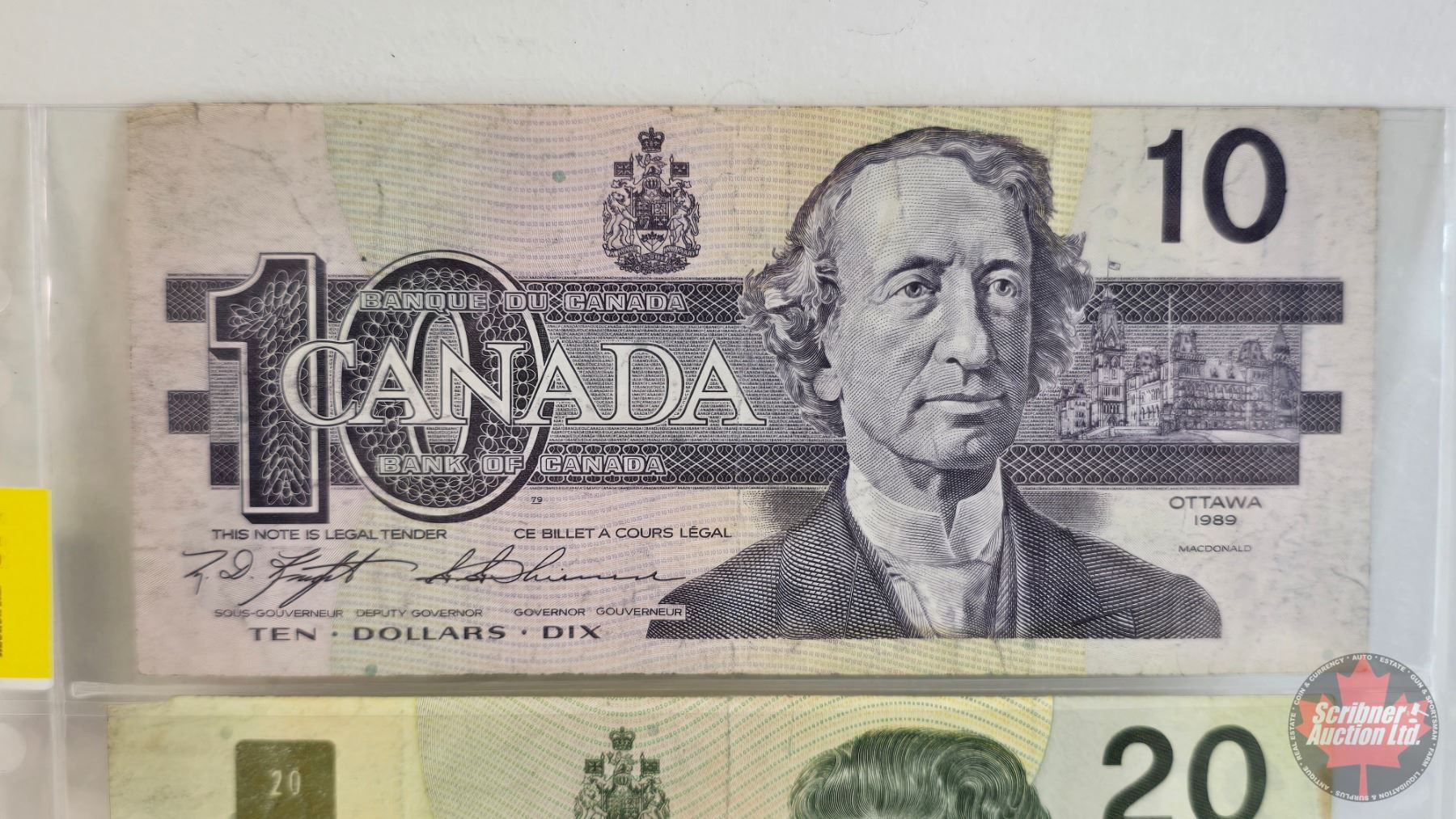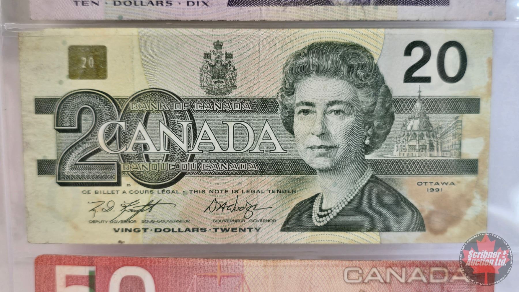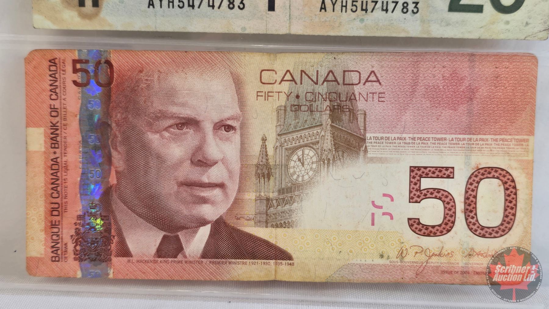 Canada Bills (3): - 1989 $10 : Knight/Thiessen #BEG6973550 - 1991 $20 : Knight/Dodge #AYH5474783 - 2004 $50 : Jenkins/Dodge #FMH0348572 (See Pics for Varieties, Conditions, Serial Numbers, Printing Dates & Signatures) (Listing & Descriptions are a GUIDE ONLY and are subject to changes, errors, additions or deletions. Please use the provided pictures to satisfy yourself to the Condition and/or Grades. Please Read & Understand All Terms & Conditions for this Auction Sale.)