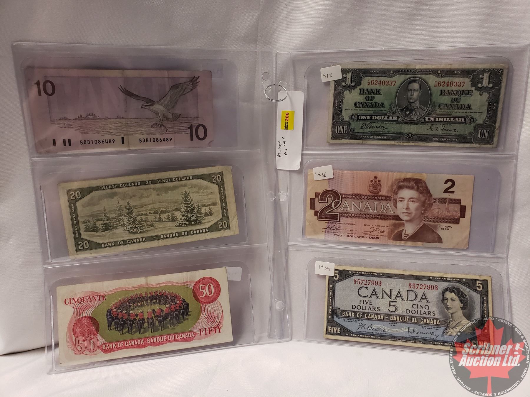 Canada Bills (6) Variety : $1 Bill 1937 ; $2 Bill 1986 ; $5 Bill 1954 ; $10 Bill 1989 ; $20 Bill 1954 ; $50 Bill 1975 (See Pics for Signatures/Serial Numbers)