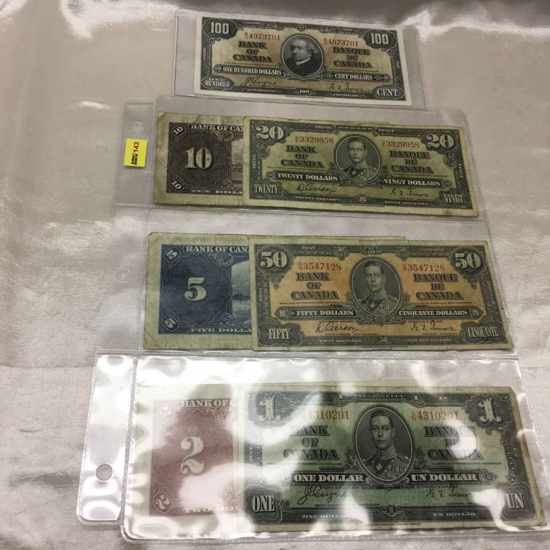 Canada Bills - Sheet of 7: 1937 Series ($1; $2; $5; $10; $20; $50; $100)