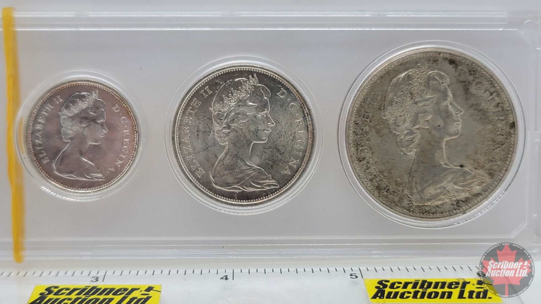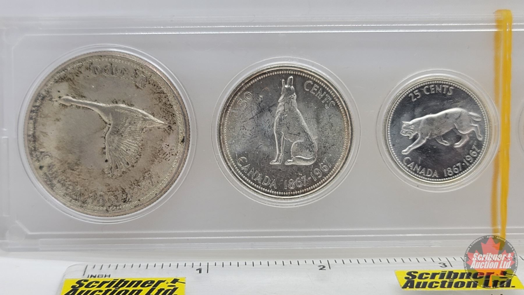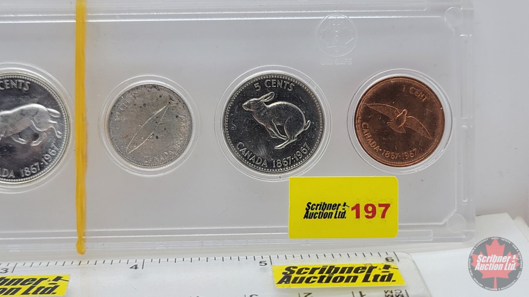 Canada Centennial Coins 1967 (Hardshell Case) : One Cent; Five Cent; Ten Cent; Twenty Five Cent; Fif
