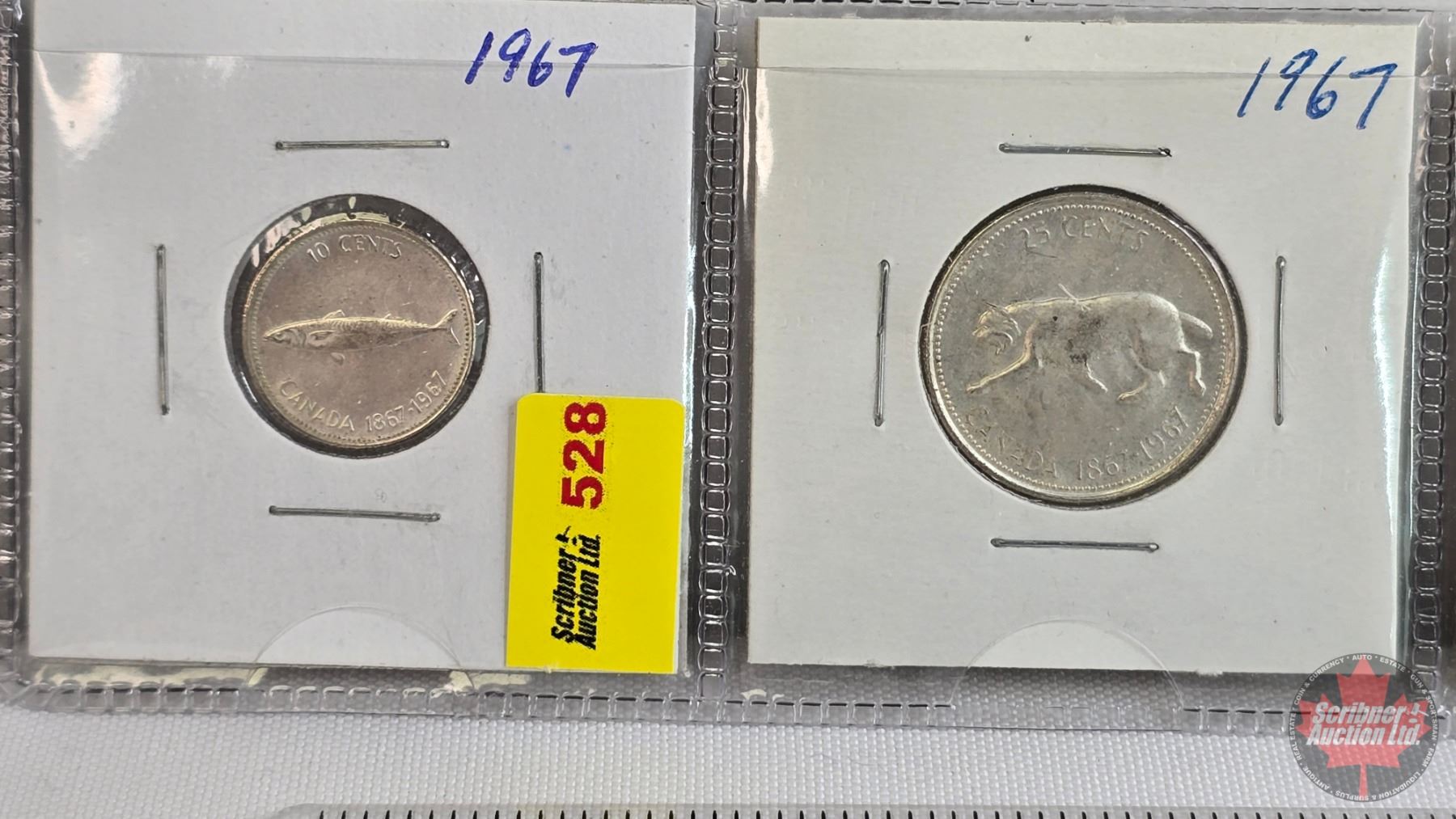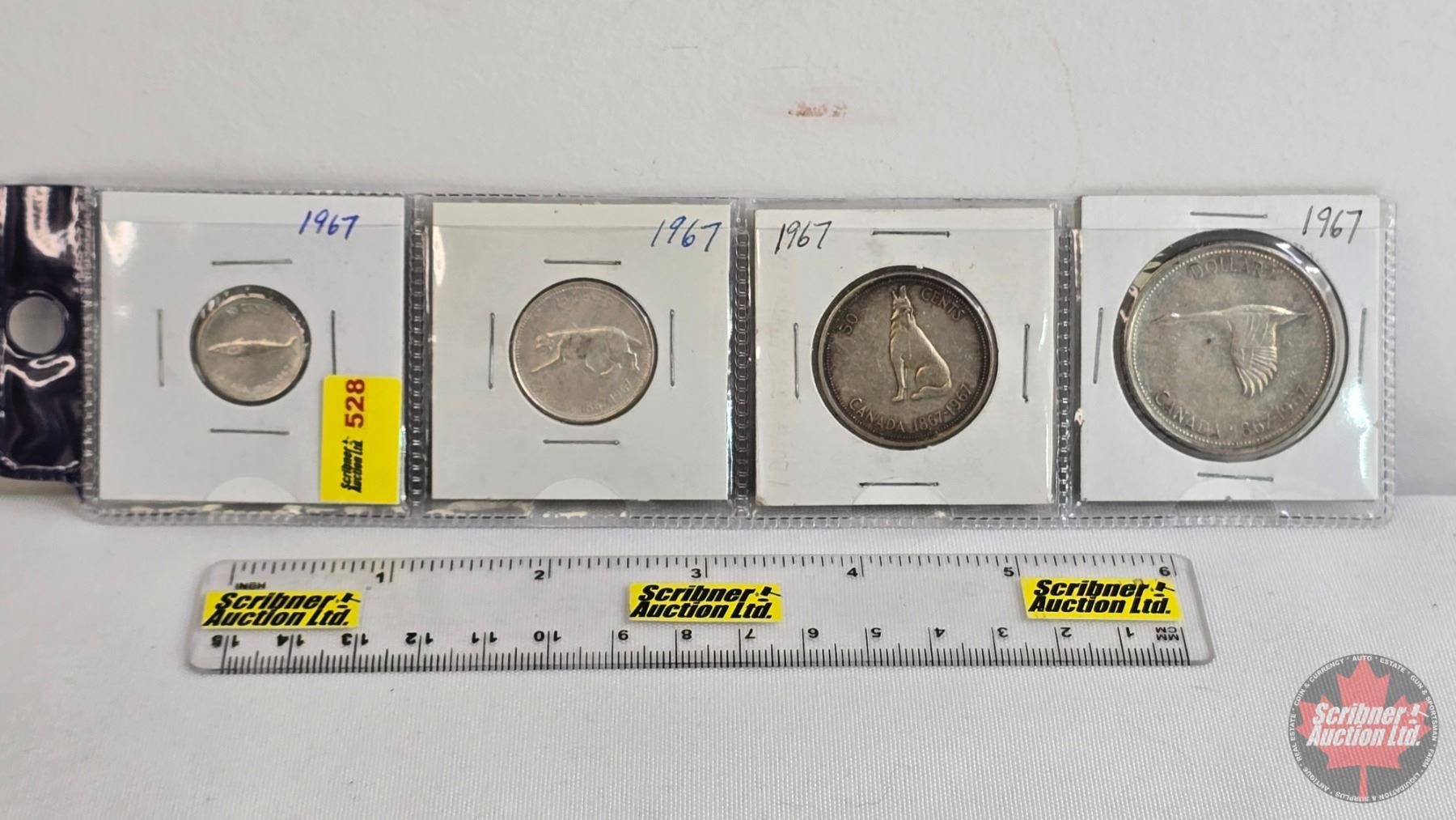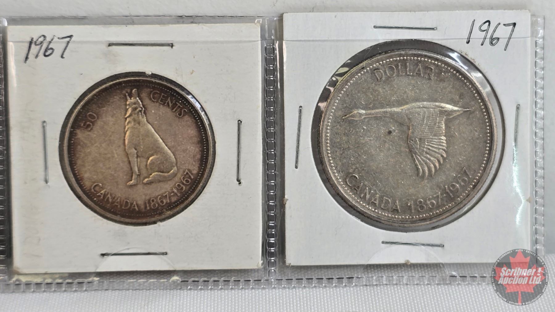 Canada Centennial Coins (4): - Ten Cent; Twenty Five Cent; Fifty Cent; Dollar (SEE PICS!) (Listing & Descriptions are a GUIDE ONLY and are subject to changes, errors, additions or deletions. Please use the provided pictures to satisfy yourself to the Condition and/or Grades. Please Read & Understand All Terms & Conditions for this Auction Sale.)