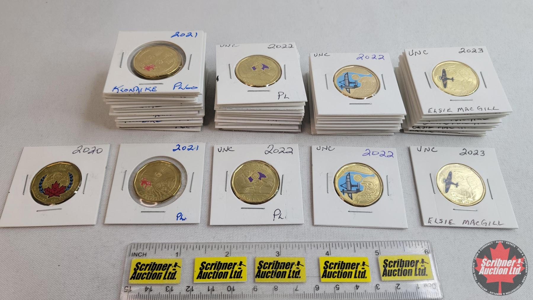 Canada Colorized Loonies (50) : 2020; 2021 (17); 2022 (22); 2023 (11) (SEE PICS!)