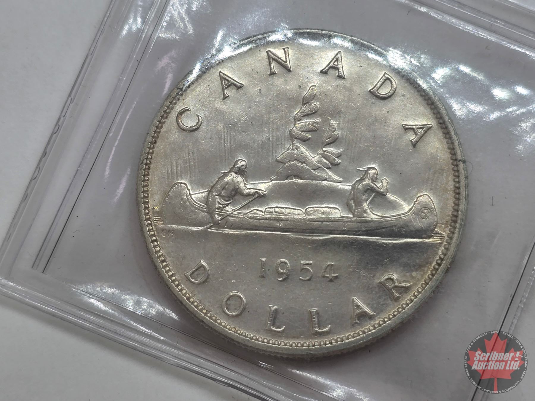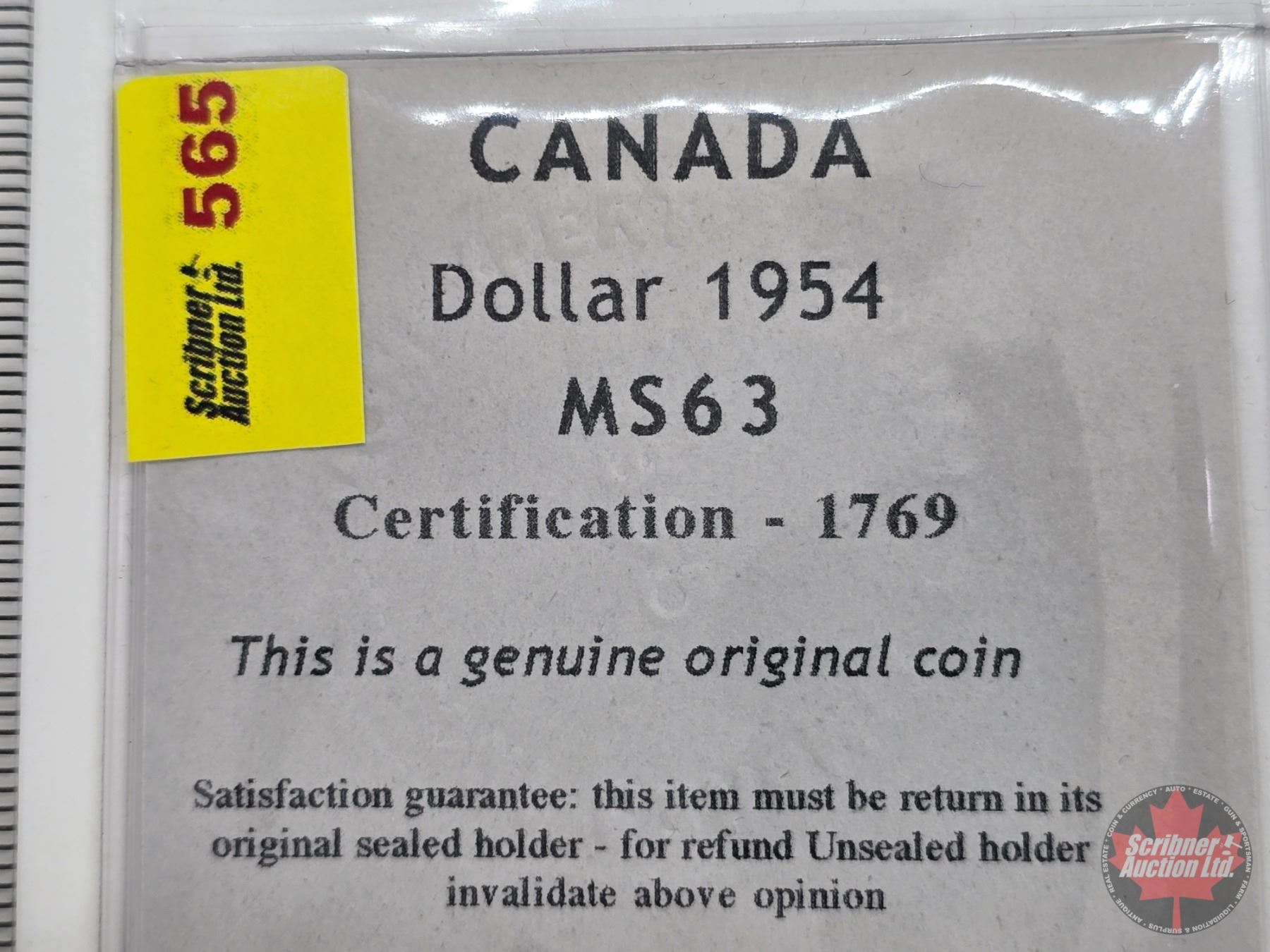 Canada Dollar 1954 (MonExpert Certification : MS-63) (SEE PICS!) (Listing & Descriptions are a GUIDE ONLY and are subject to changes, errors, additions or deletions. Please use the provided pictures to satisfy yourself to the Condition and/or Grades. Please Read & Understand All Terms & Conditions for this Auction Sale.)