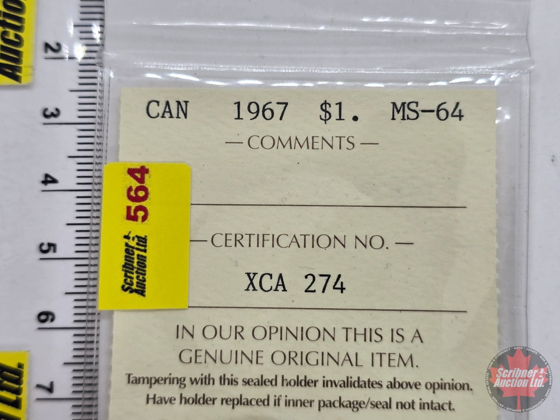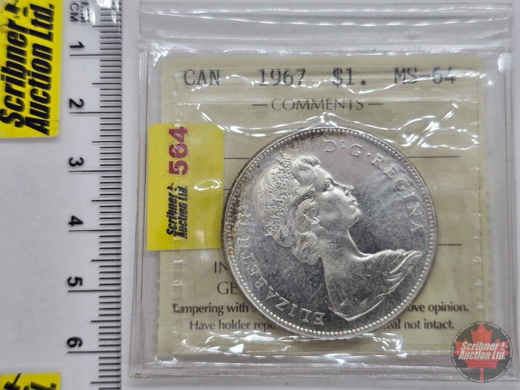 Canada Dollar 1967 (ICCS Certification : MS-64) (SEE PICS!) (Listing & Descriptions are a GUIDE ONLY and are subject to changes, errors, additions or deletions. Please use the provided pictures to satisfy yourself to the Condition and/or Grades. Please Read & Understand All Terms & Conditions for this Auction Sale.)