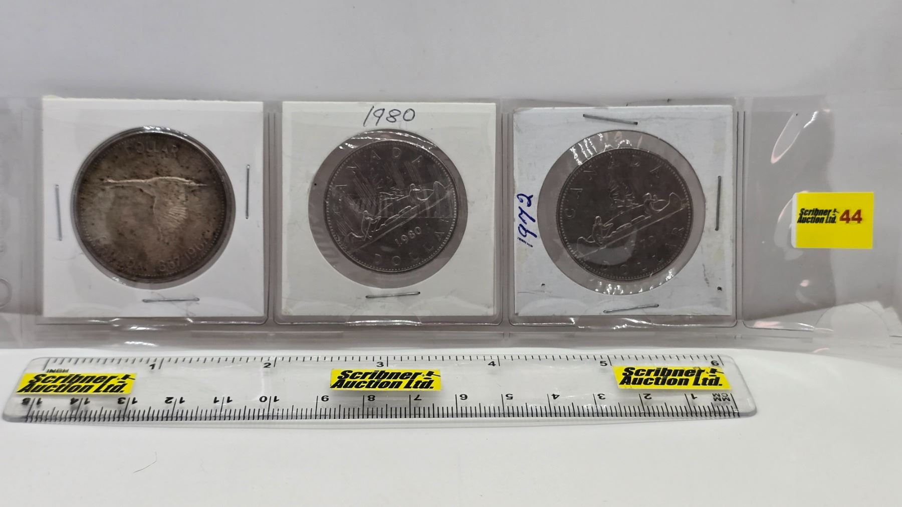 Canada Dollars (3): 1867-1967; 1972; 1980 (SEE PICS!) (Listing & Descriptions are a GUIDE ONLY and are subject to changes, errors, additions or deletions. Please use the provided pictures to satisfy yourself to the Condition and/or Grades. Please Read & Understand All Terms & Conditions for this Auction Sale.)