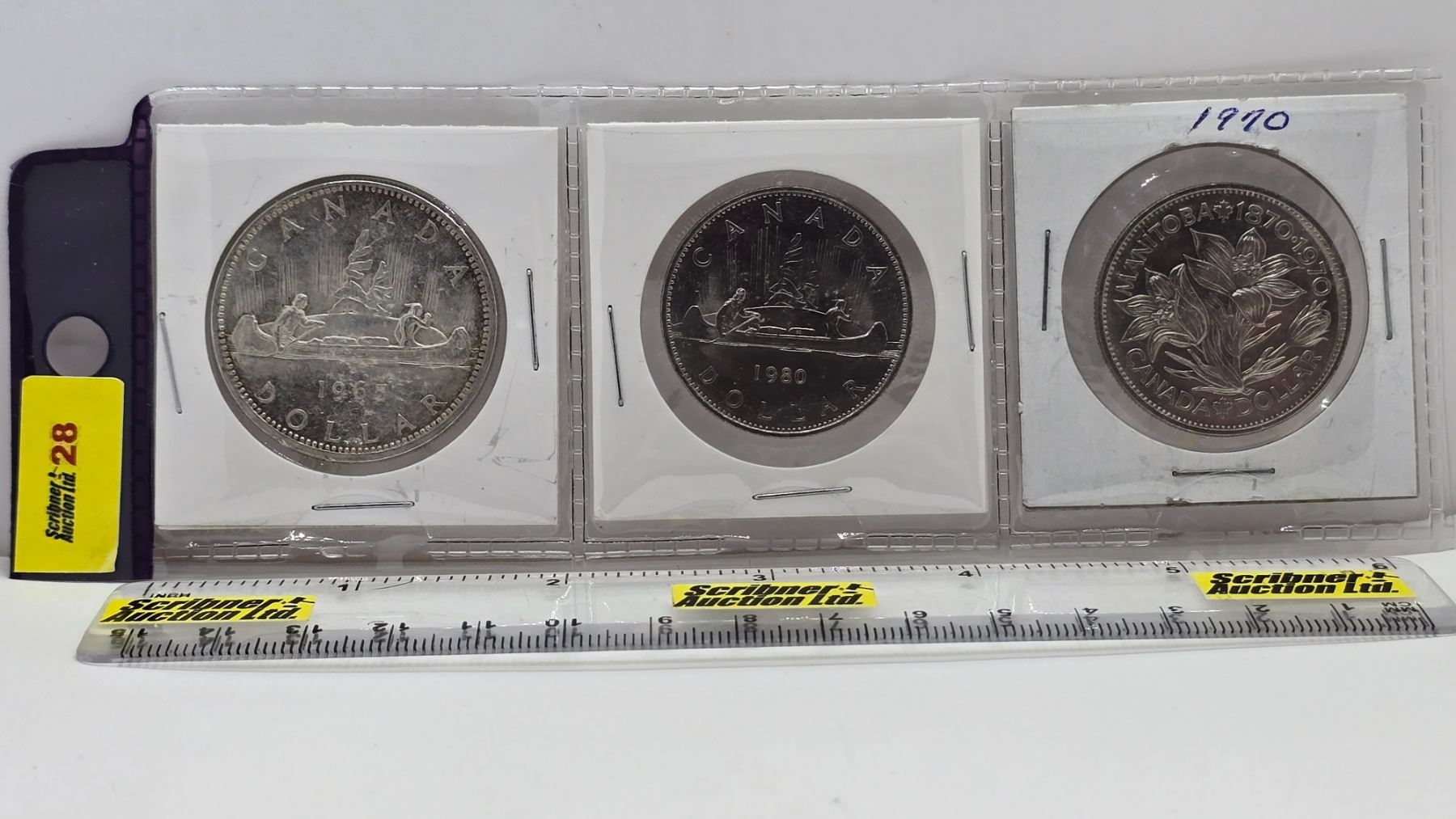 Canada Dollars (3): 1965; 1870-1970; 1980 (SEE PICS!) (Listing & Descriptions are a GUIDE ONLY and are subject to changes, errors, additions or deletions. Please use the provided pictures to satisfy yourself to the Condition and/or Grades. Please Read & Understand All Terms & Conditions for this Auction Sale.)