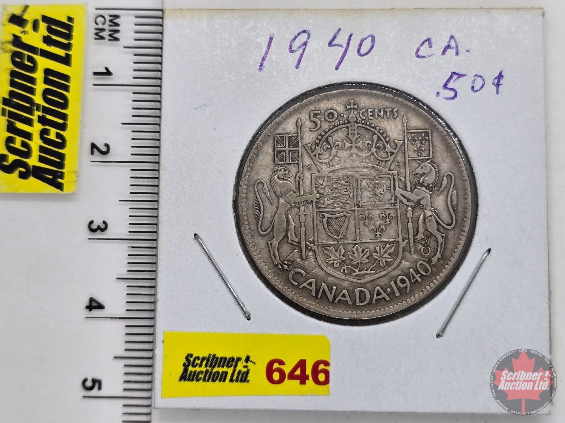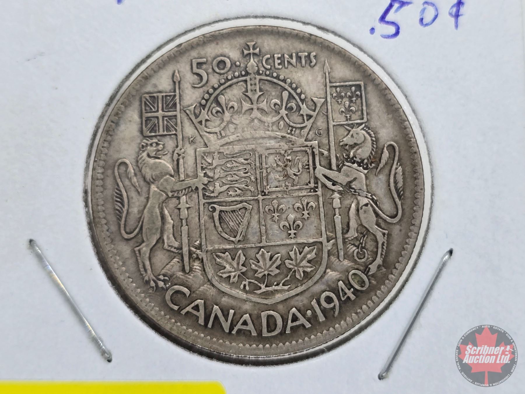 Canada Fifty Cent 1940 (SEE PICS!) (Listing & Descriptions are a GUIDE ONLY and are subject to changes, errors, additions or deletions. Please use the provided pictures to satisfy yourself to the Condition and/or Grades. Please Read & Understand All Terms & Conditions for this Auction Sale.)