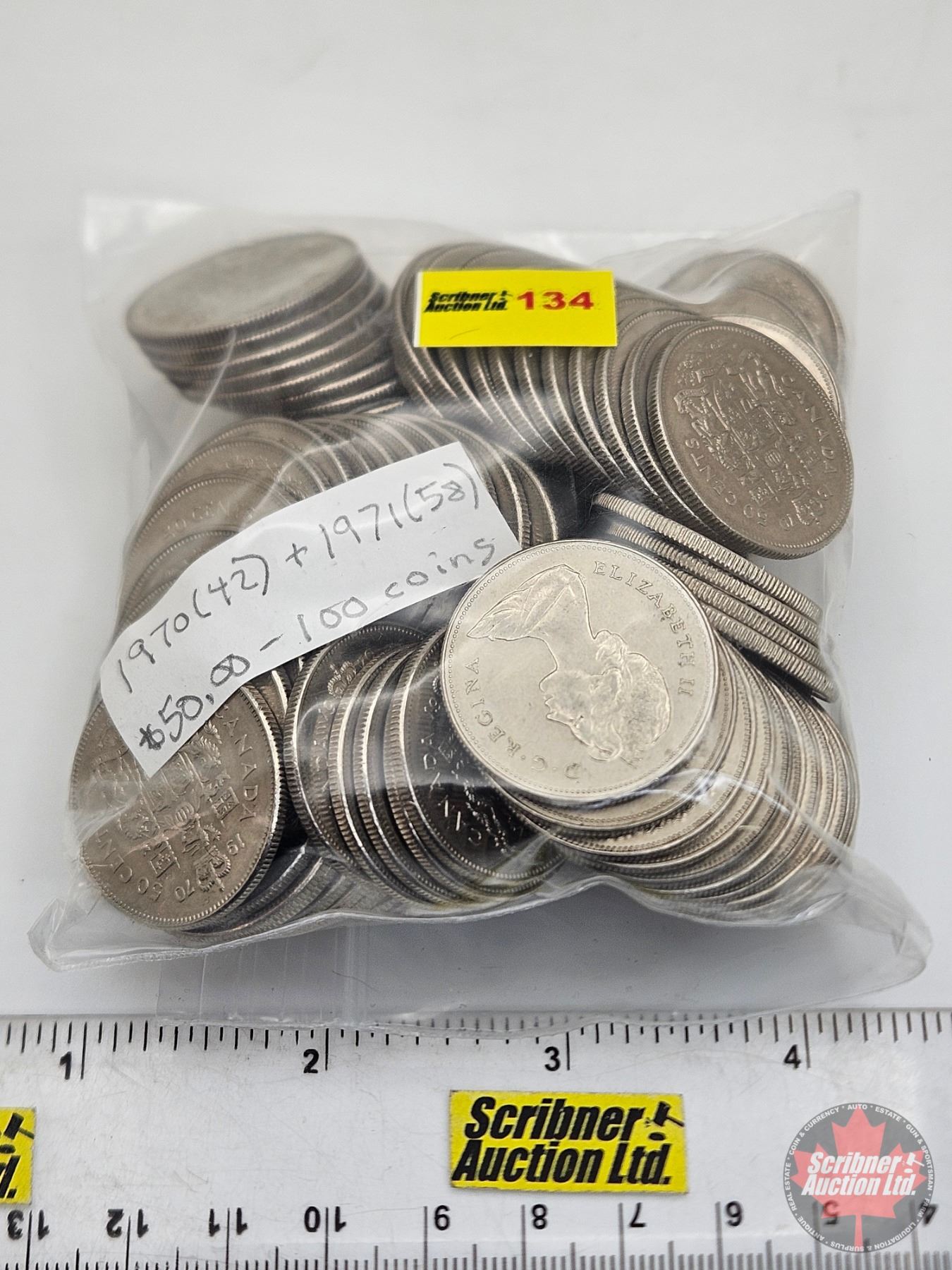 Canada Fifty Cent 1970 & 1971 (100 Coins) (Pouch)
