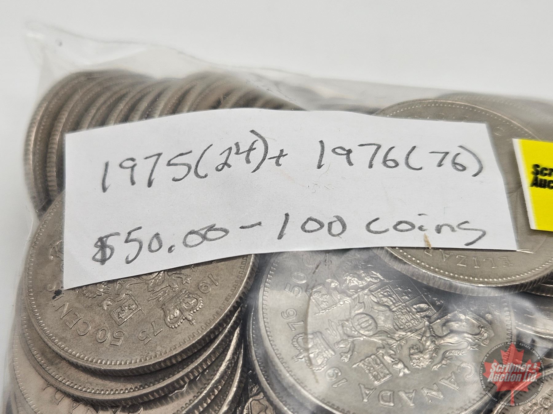 Canada Fifty Cent 1975 & 1976 (100 Coins) (Pouch)