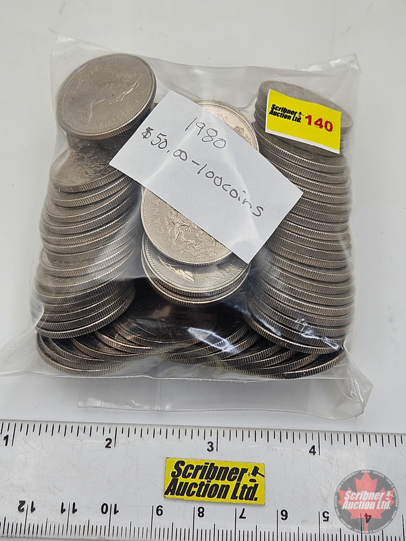 Canada Fifty Cent 1980 (100 Coins) (Pouch)