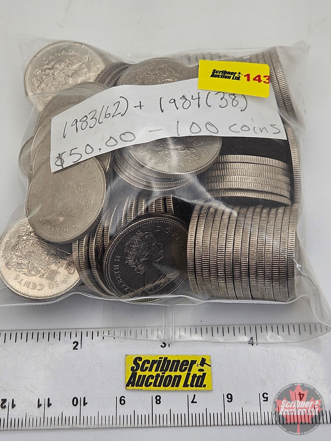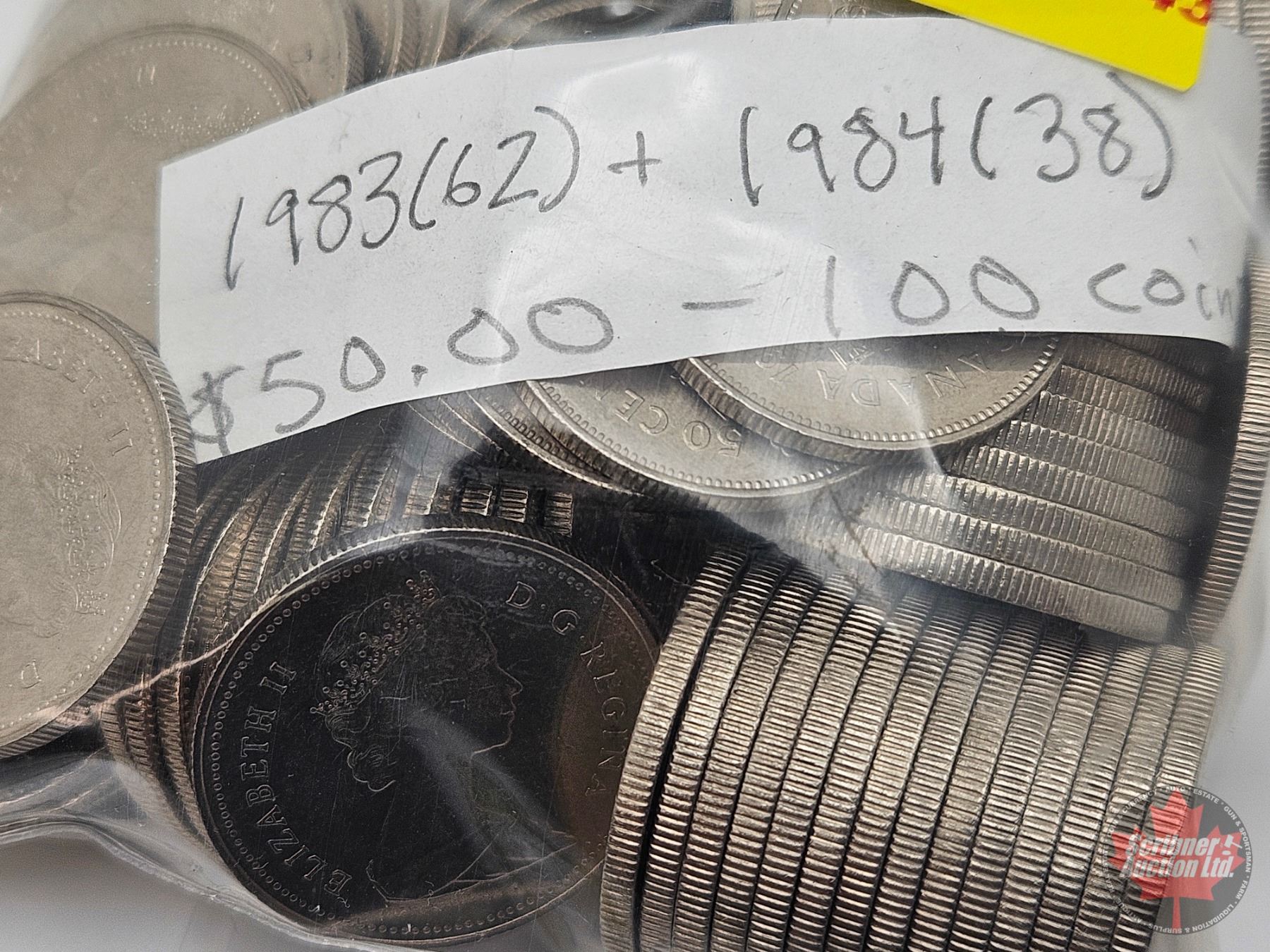 Canada Fifty Cent 1983 & 1984 (100 Coins) (Pouch)