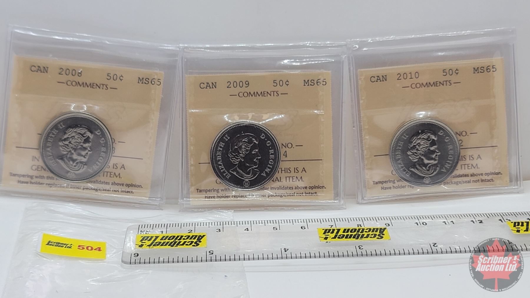 Canada Fifty Cent (3): ~ 2008 (ICCS Cert: MS65) ~ 2009 (ICCS Cert: MS65) ~ 2010 (ICCS Cert : MS65)