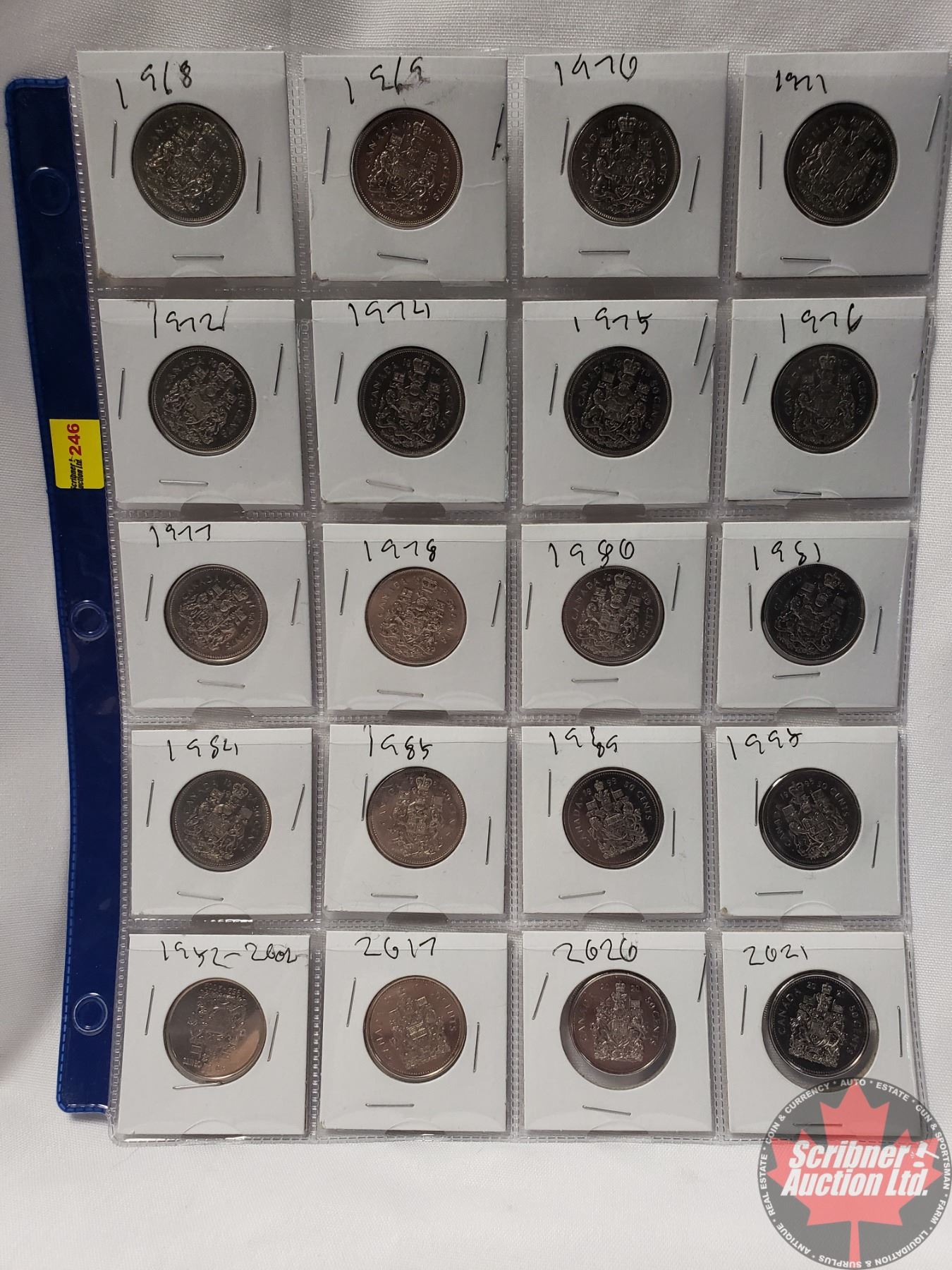 Canada Fifty Cent - Sheet of 20: 1968; 1969; 1970; 1971; 1972; 1974; 1975; 1976; 1977; 1978; 1980; 1981; 1984; 1985; 1999; 1995; 2002; 2017; 2020; 2021