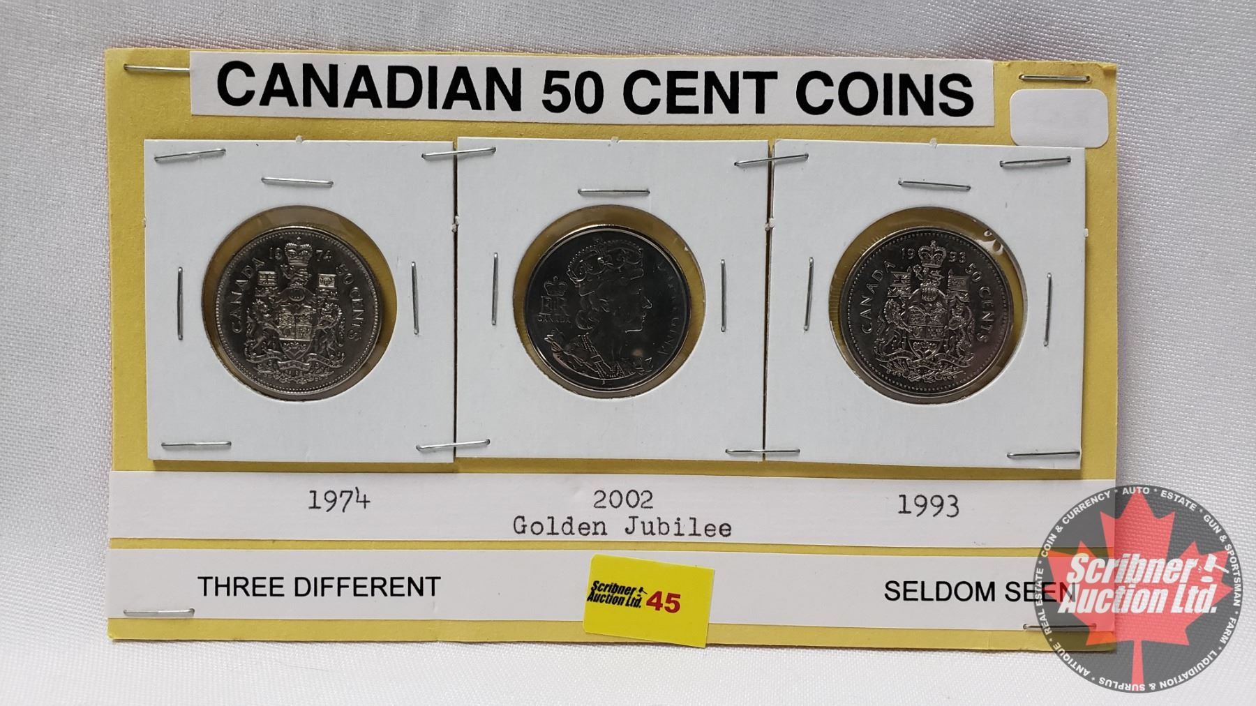 Canada Fifty Cent - Strip of 3: 1974; 2002; 1993