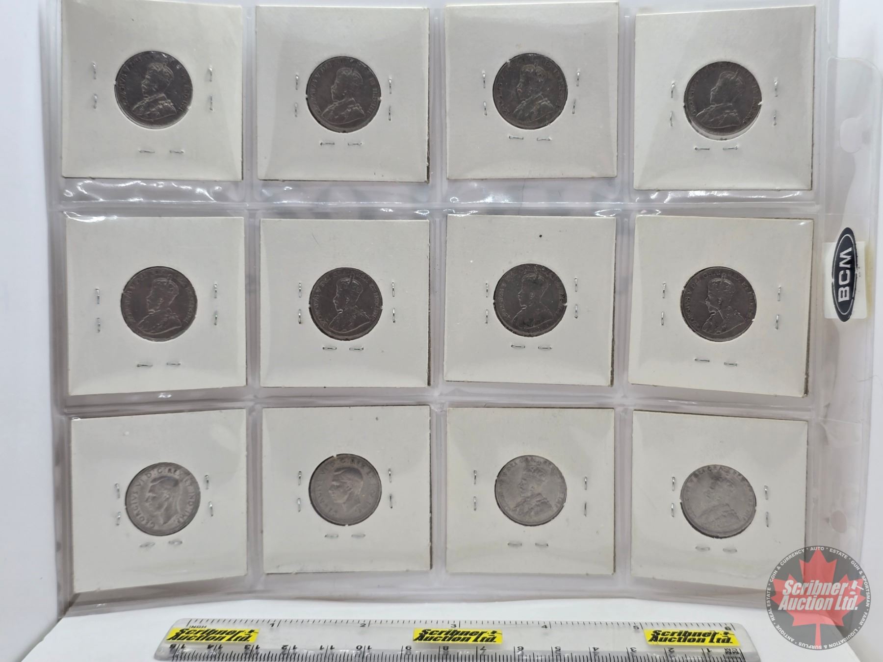 Canada Five Cent (12) : 1923; 1928; 1929; 1932; 1933; 1933; 1934; 1935; 1935; 1936; 1939; 1939 (SEE PICS!)  (Listing & Descriptions are a GUIDE ONLY and are subject to changes, errors, additions or deletions. Please use the provided pictures to satisfy yourself to the Condition and/or Grades. Please Read & Understand All Terms & Conditions for this Auction Sale.)