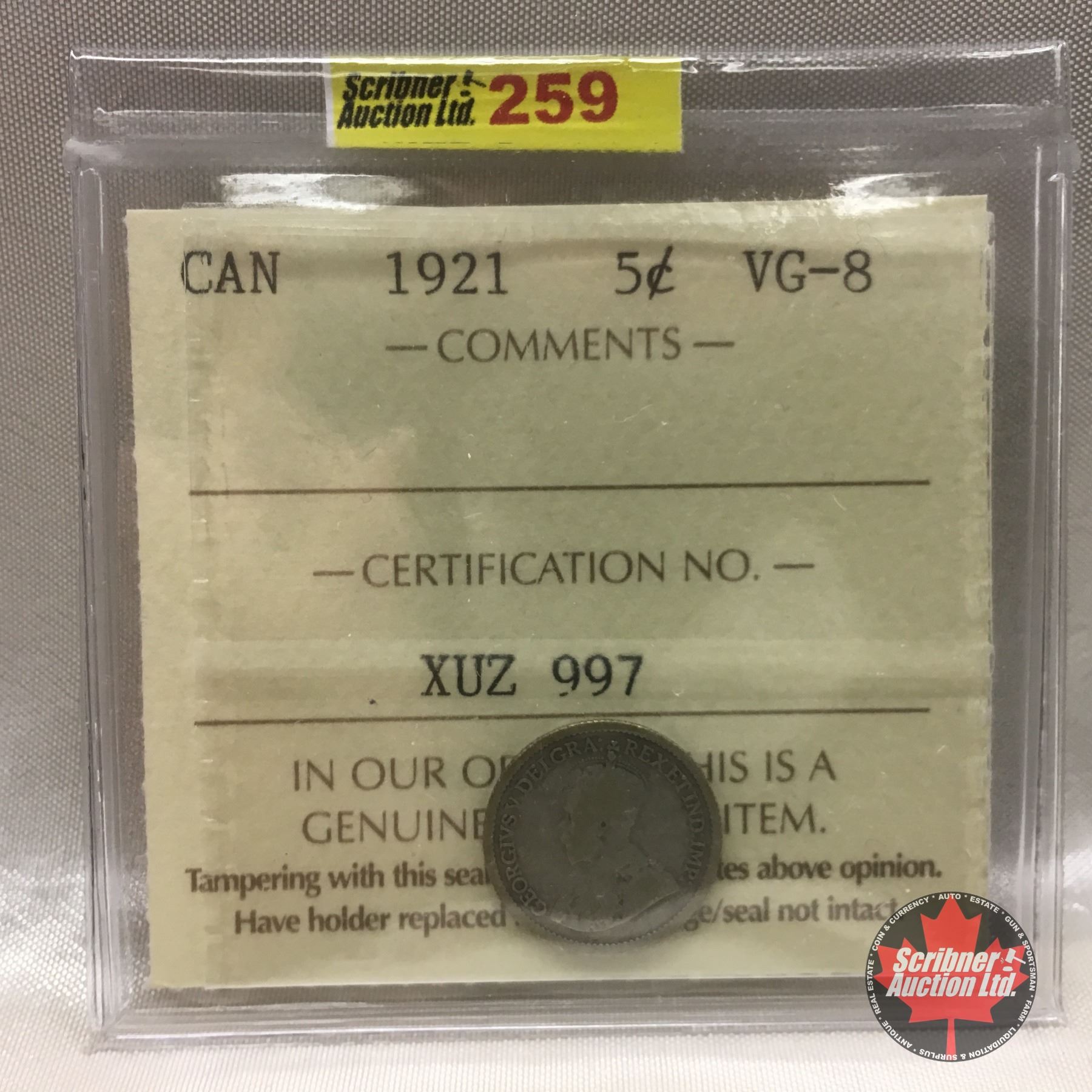 Canada Five Cent 1921 "Prince of Coins" (ICCS Certified XUZ997: VG-8)