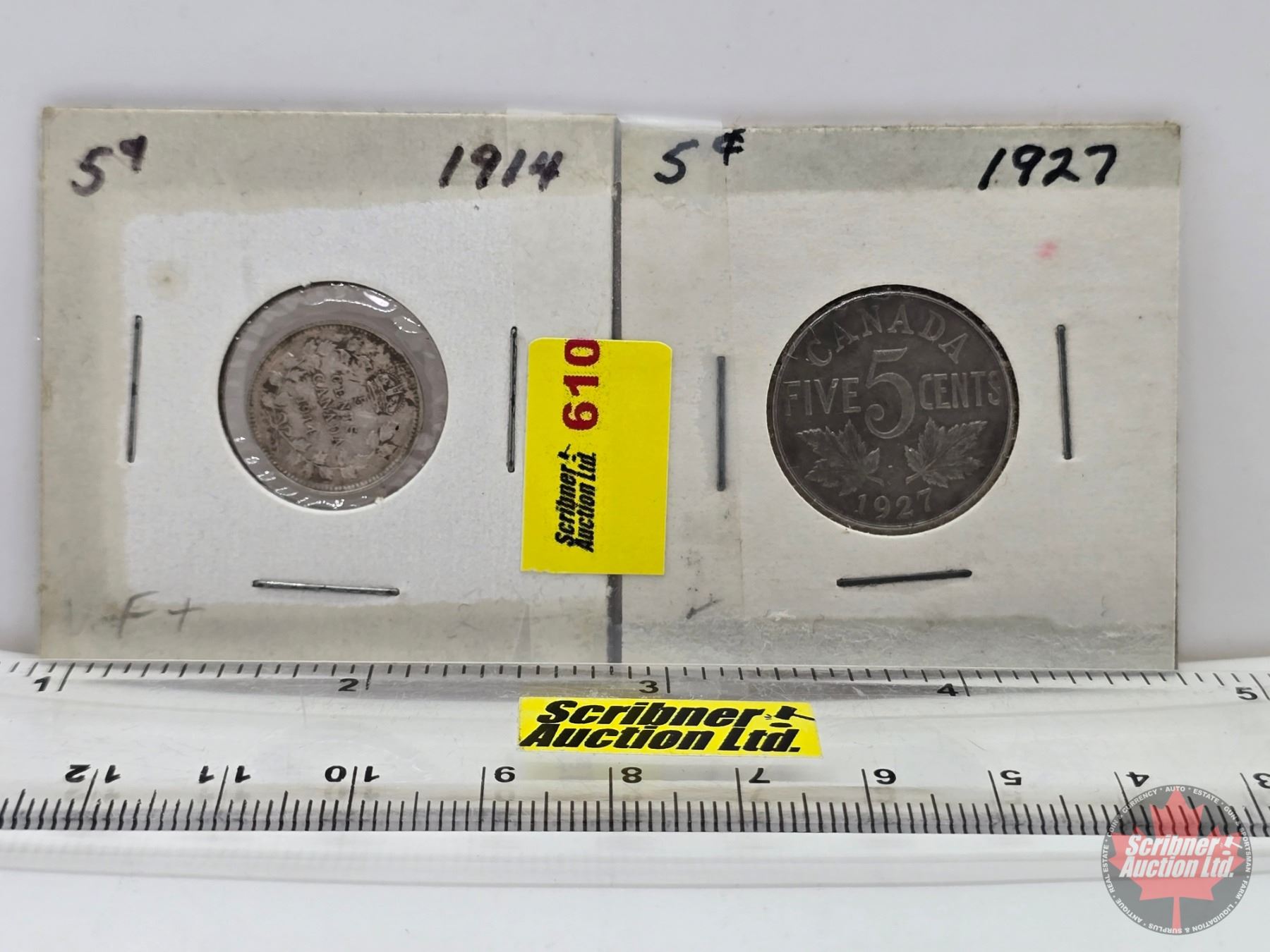 Canada Five Cent (2): 1914; 1927 (SEE PICS!) (Listing & Descriptions are a GUIDE ONLY and are subject to changes, errors, additions or deletions. Please use the provided pictures to satisfy yourself to the Condition and/or Grades. Please Read & Understand All Terms & Conditions for this Auction Sale.)