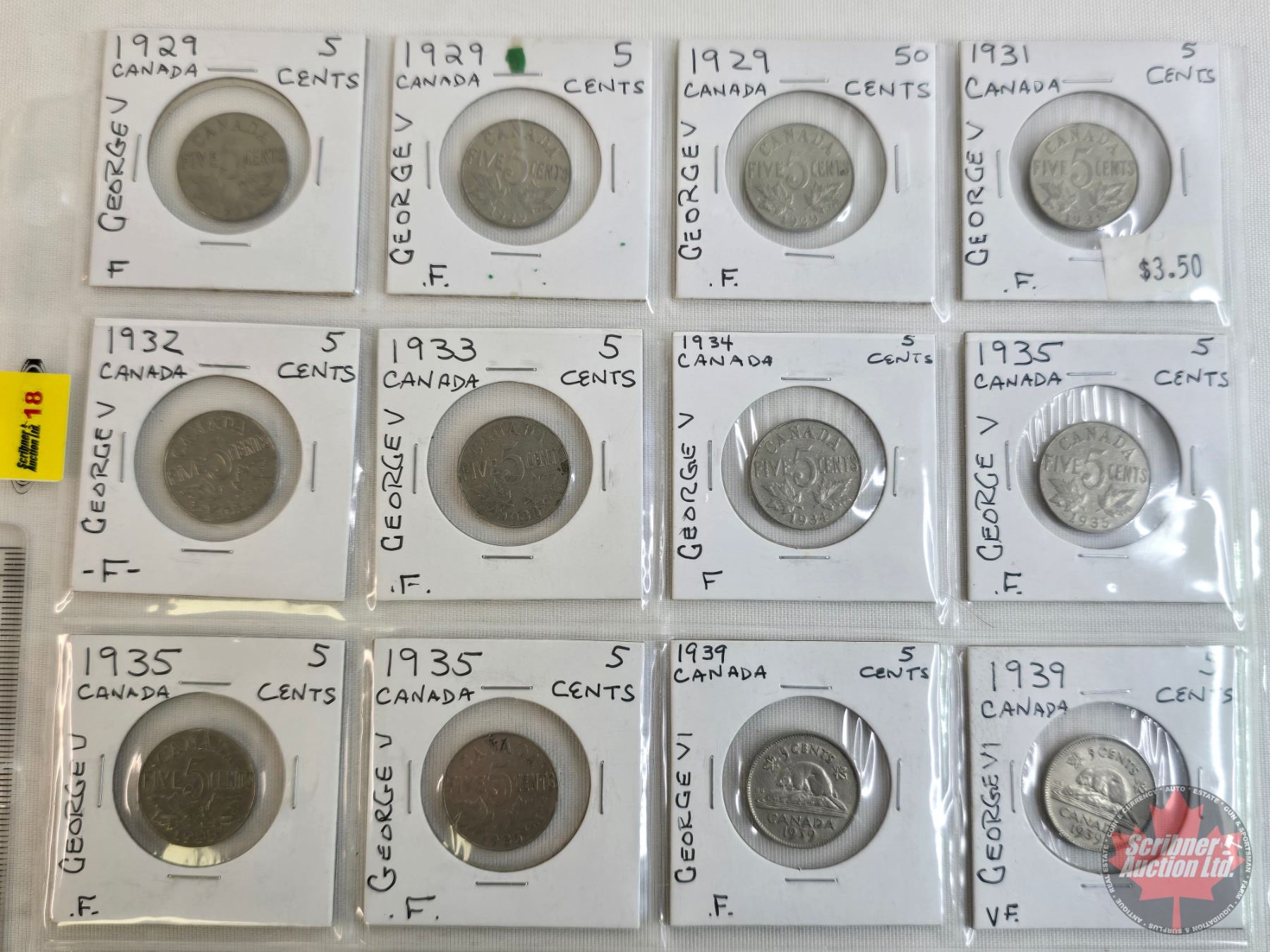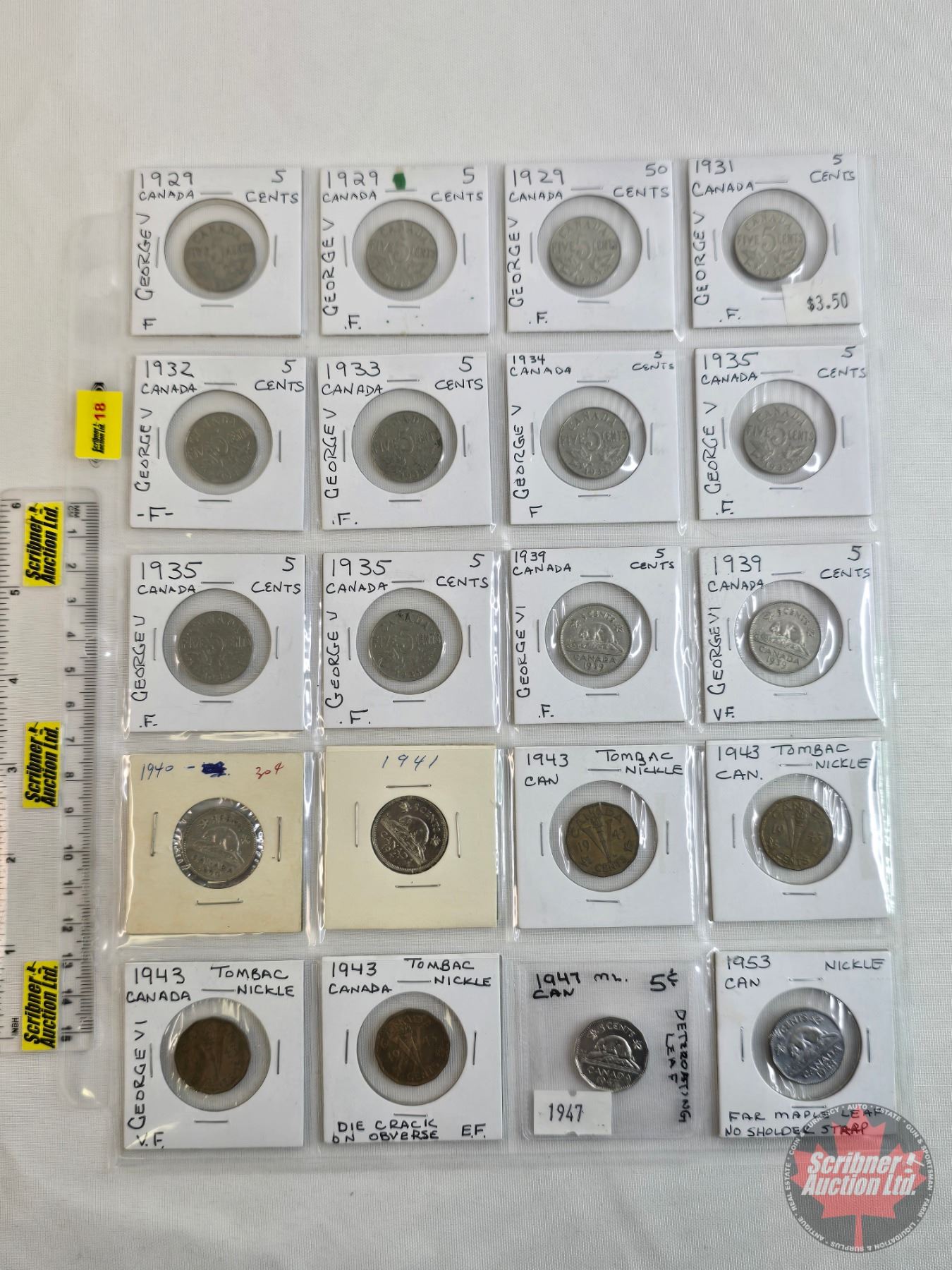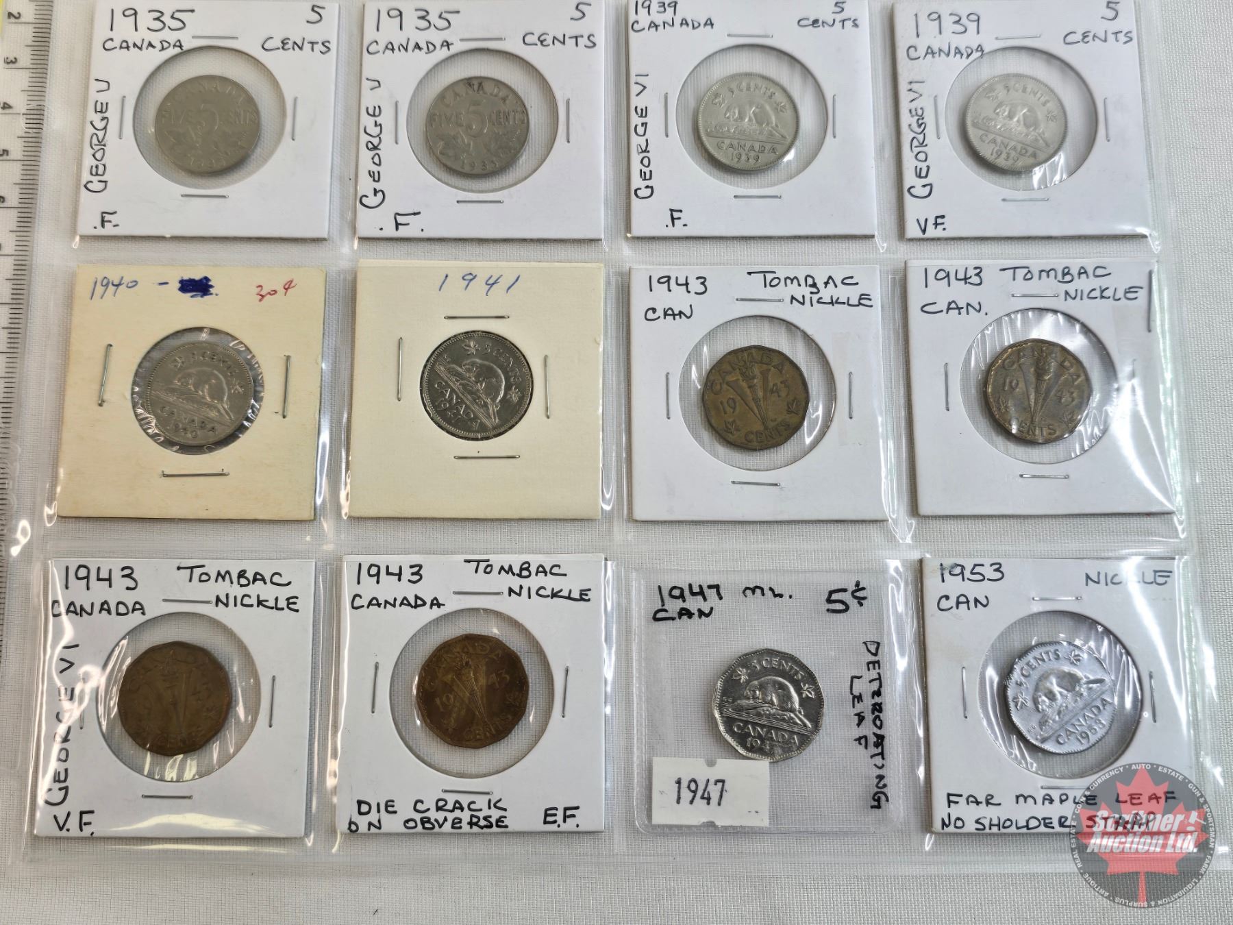 Canada Five Cent (20): 1929; 1929; 1929; 1931; 1932; 1933; 1934; 1935; 1935; 1935; 1939; 1939; 1940; 1941; 1943 Tom; 1943 Tom; 1943 Tom; 1943 Tom; 1947ML; 1953