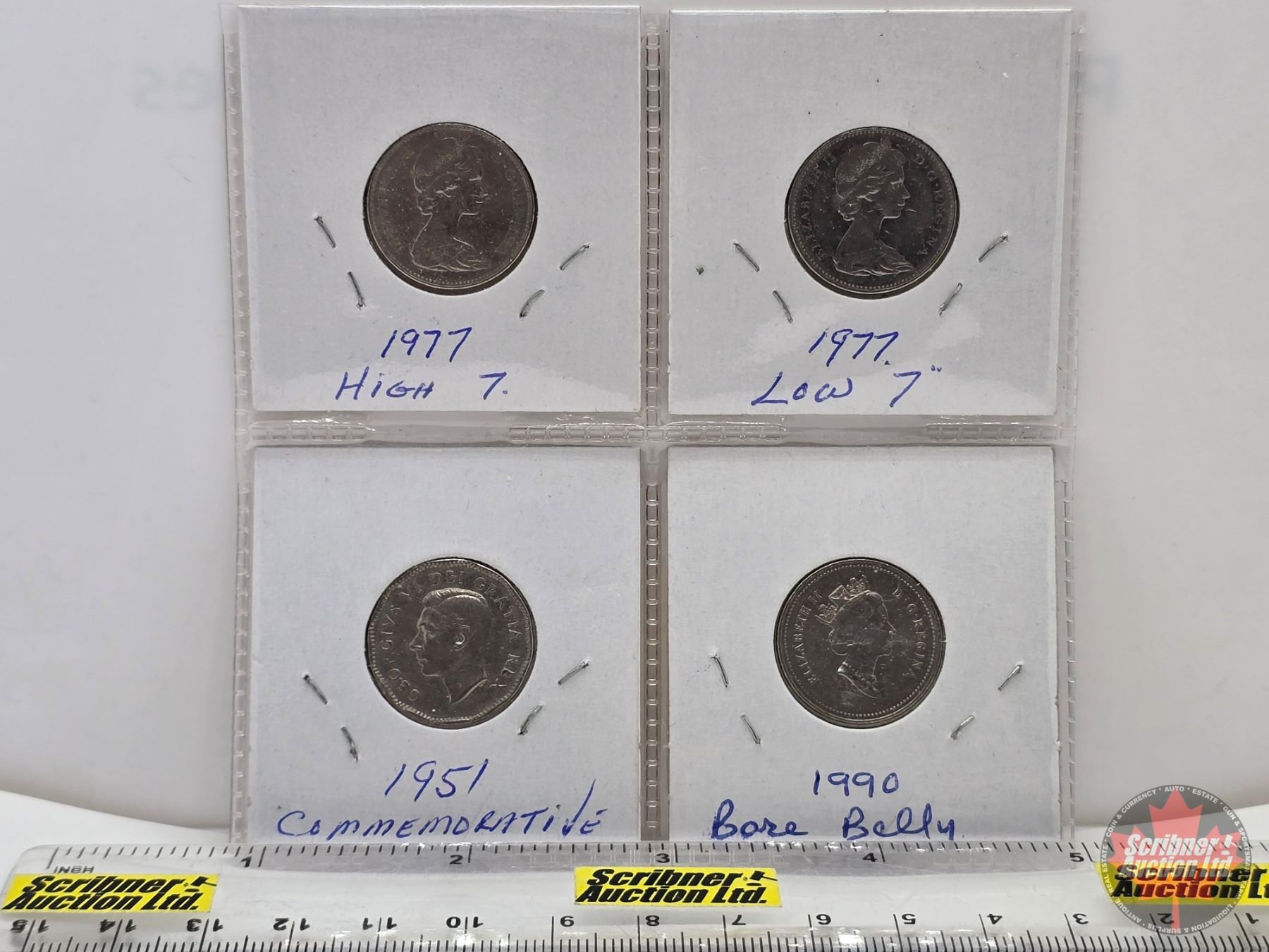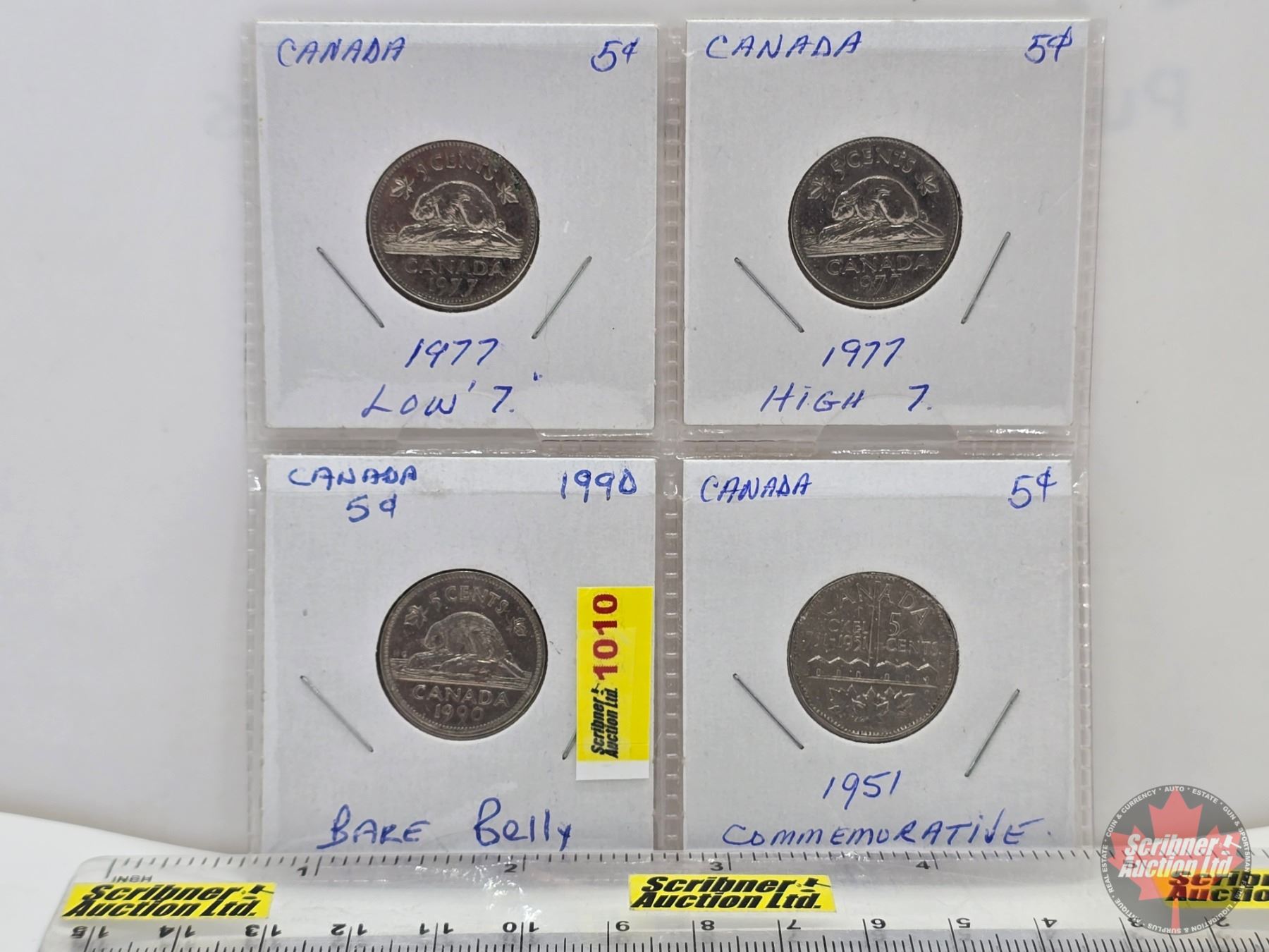 Canada Five Cent (4): 1977 Low; 1977 High; 1990BB; 1951 (SEE PICS!)