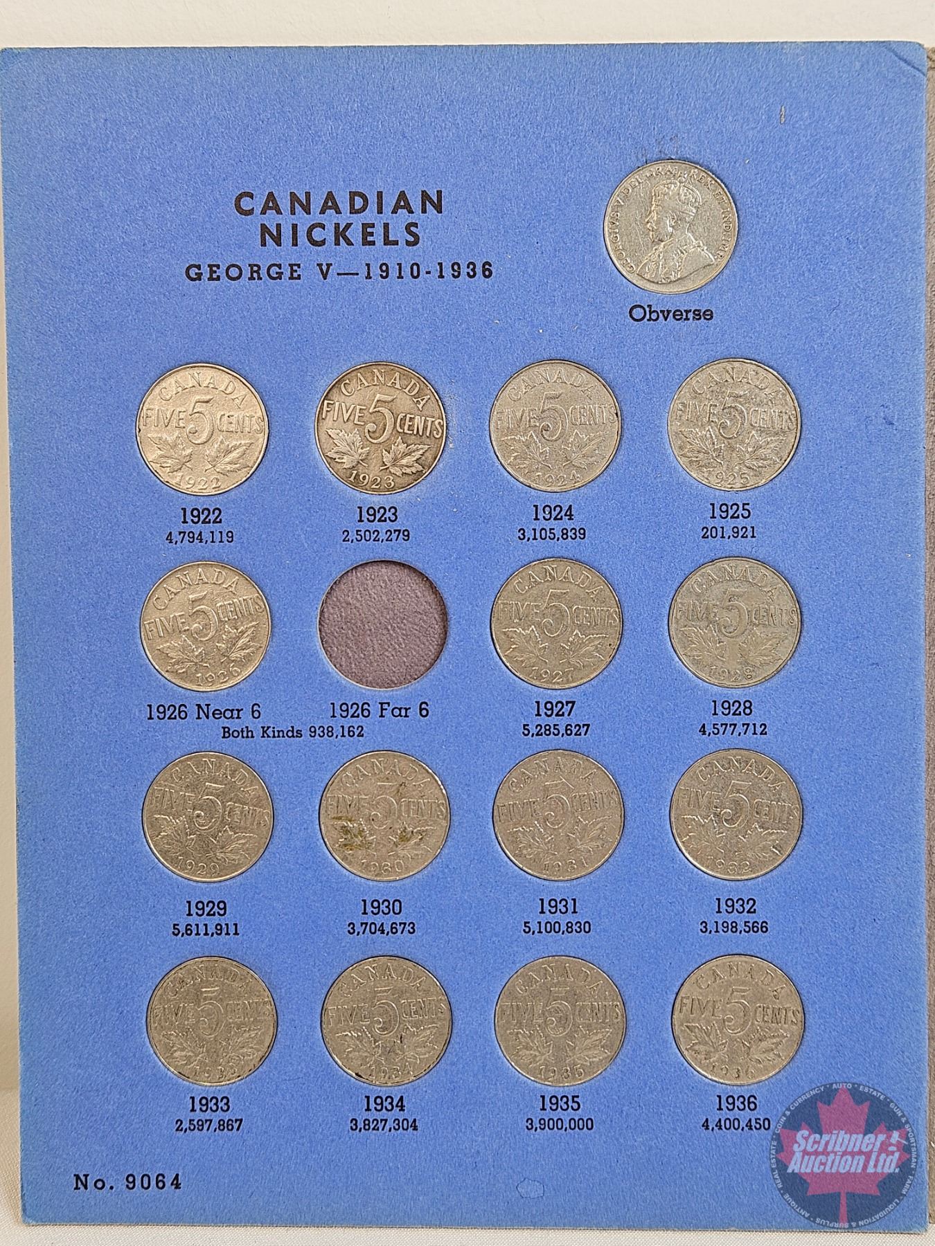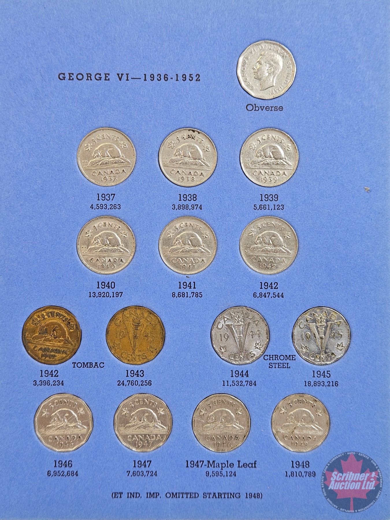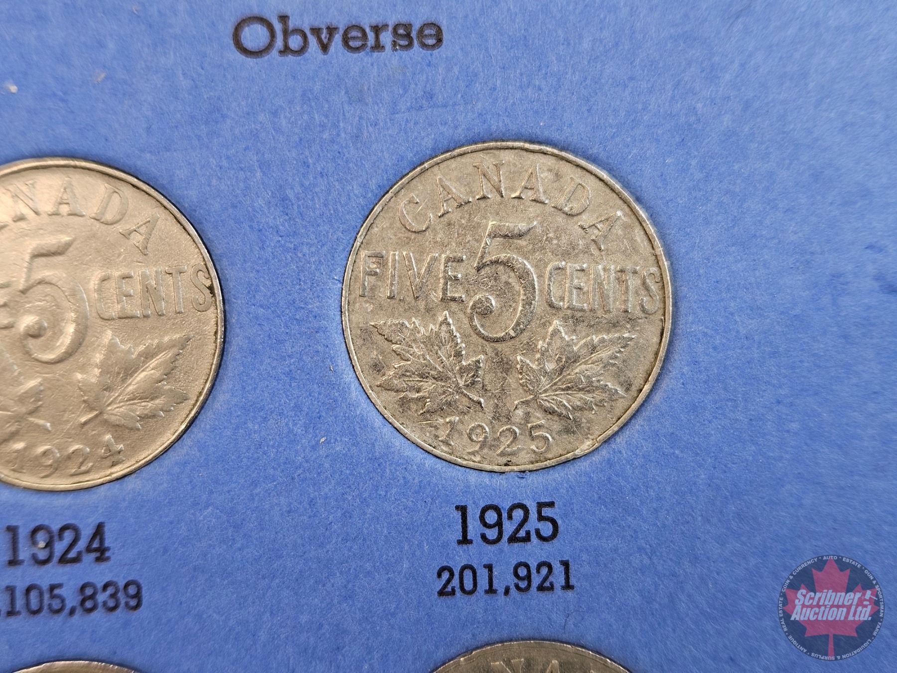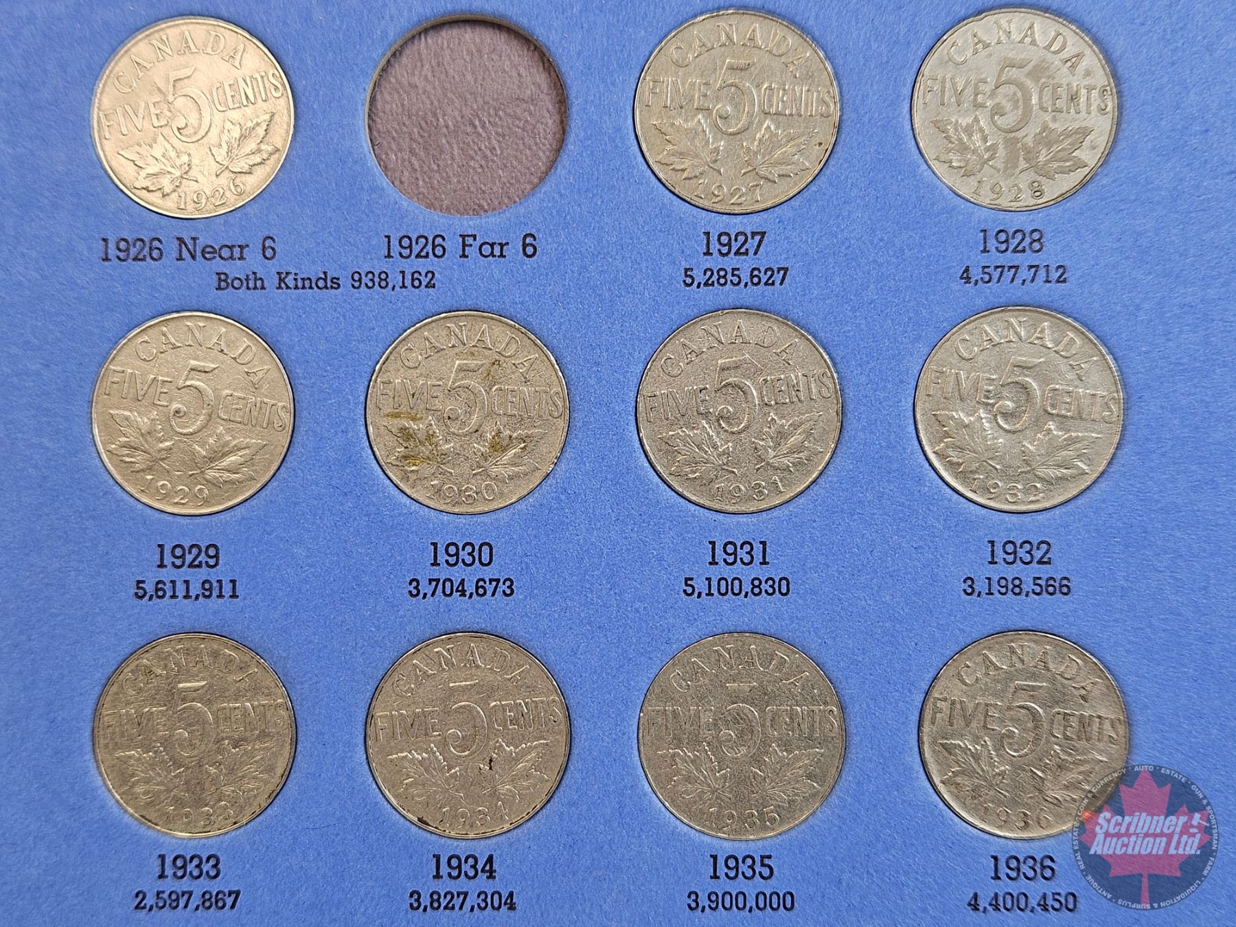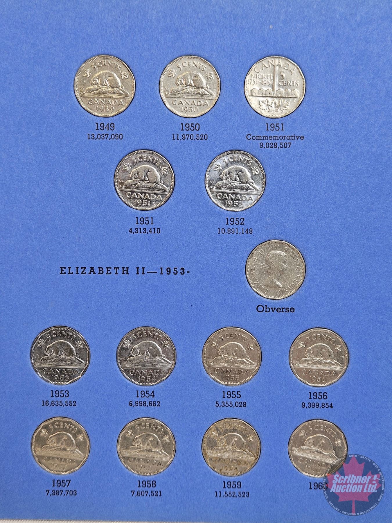 Canada Five Cent Collection in Whitman Portfolio : 1922 - 1960 (45 Coins)