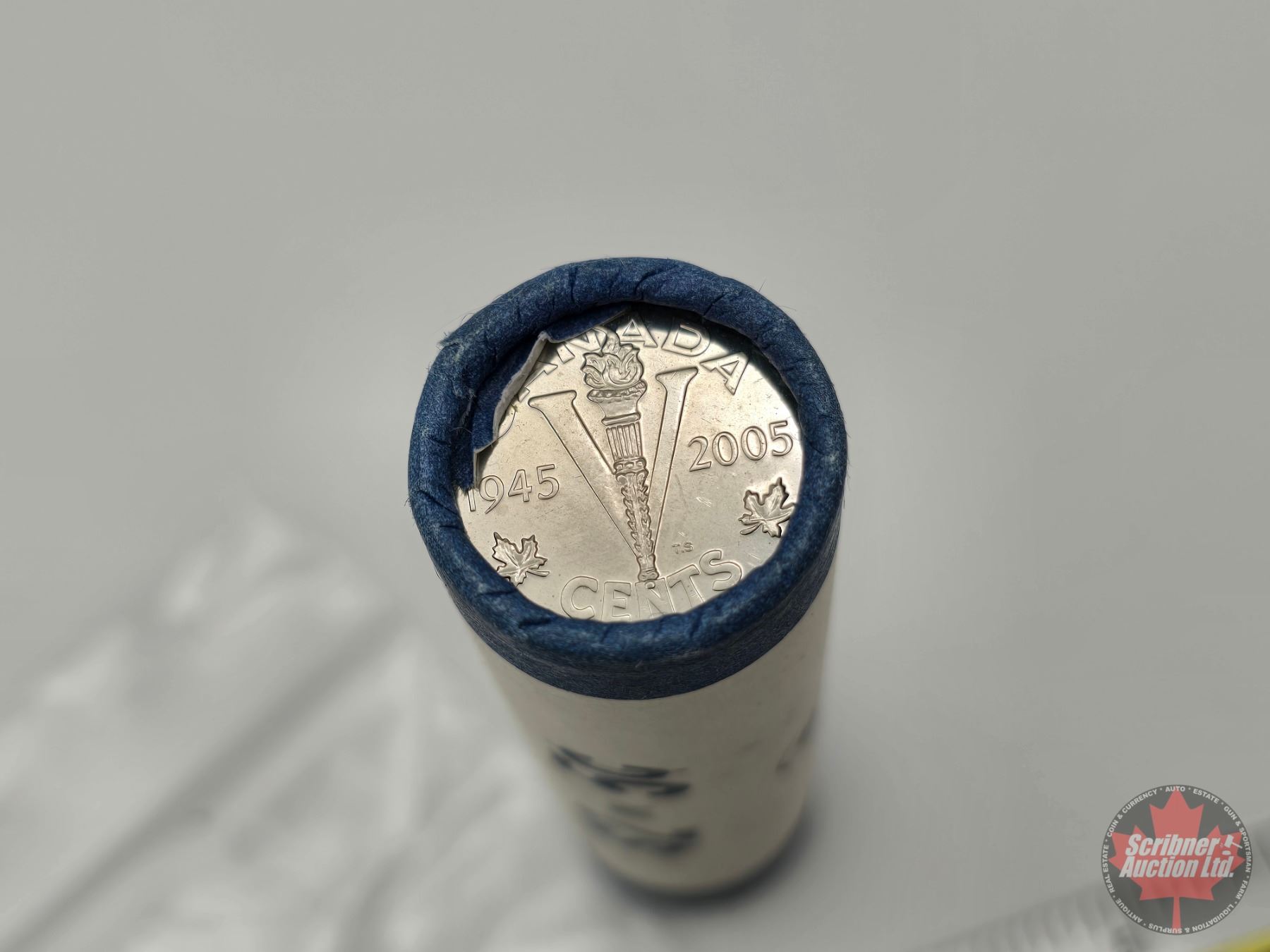 Canada Five Cent ROLL : 1945-2005 VE Day (NOTE: Rolls not opened by the Auction Company, so quantity and contents not verified) (SEE PICS!) (Listing & Descriptions are a GUIDE ONLY and are subject to changes, errors, additions or deletions. Please use the provided pictures to satisfy yourself to the Condition and/or Grades. Please Read & Understand All Terms & Conditions for this Auction Sale.)