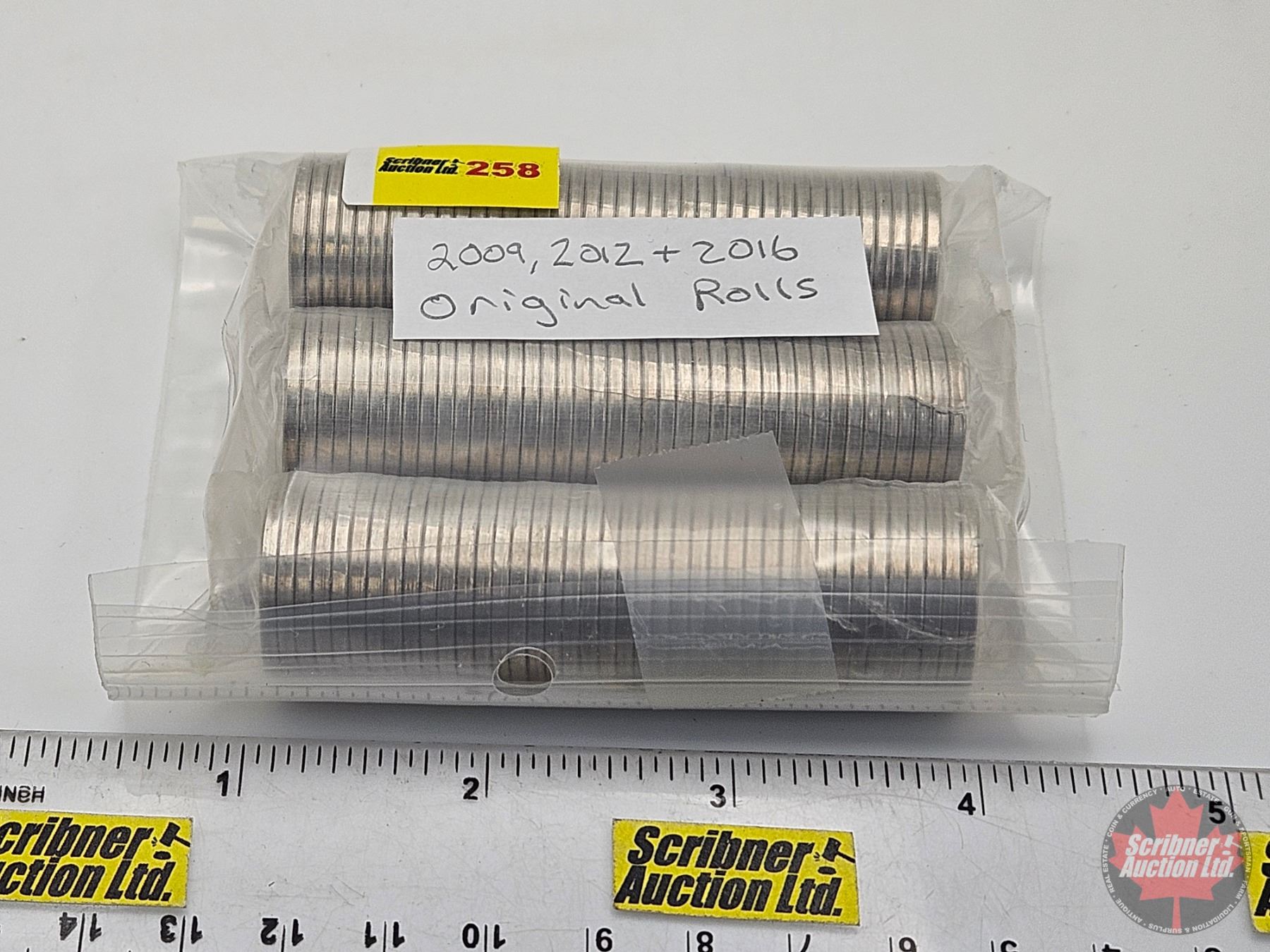 Canada Five Cent Rolls (3) : 2009, 2012 & 2016 (Original Rolls)