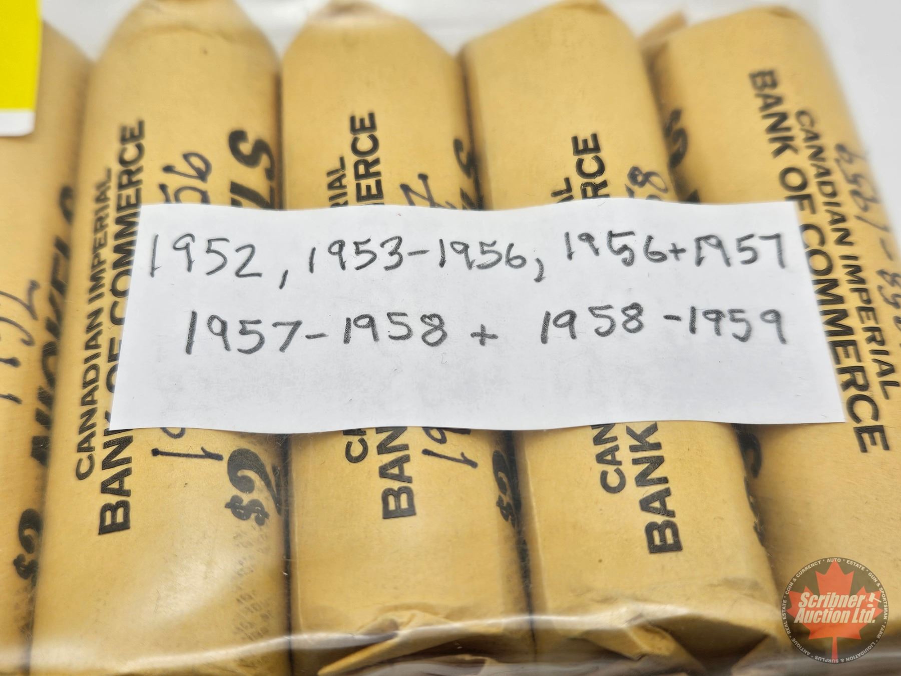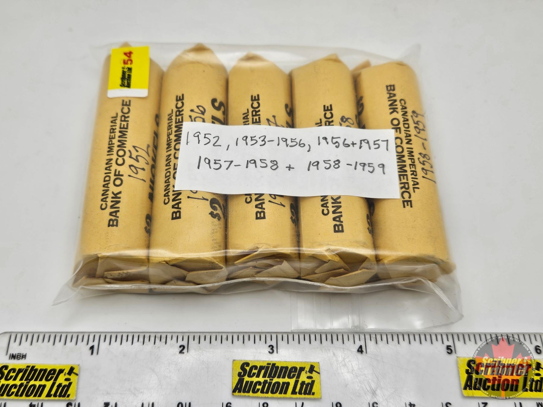 Canada Five Cent Rolls (5) : 1952, 1953-1956, 1956+1957, 1957-1958 & 1958-1959 (200 Coins)