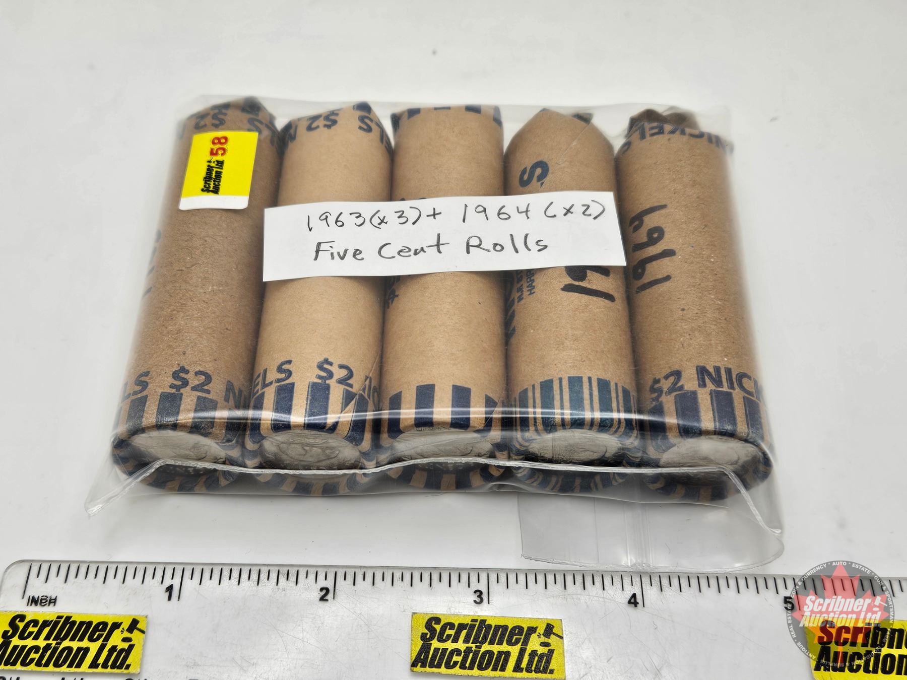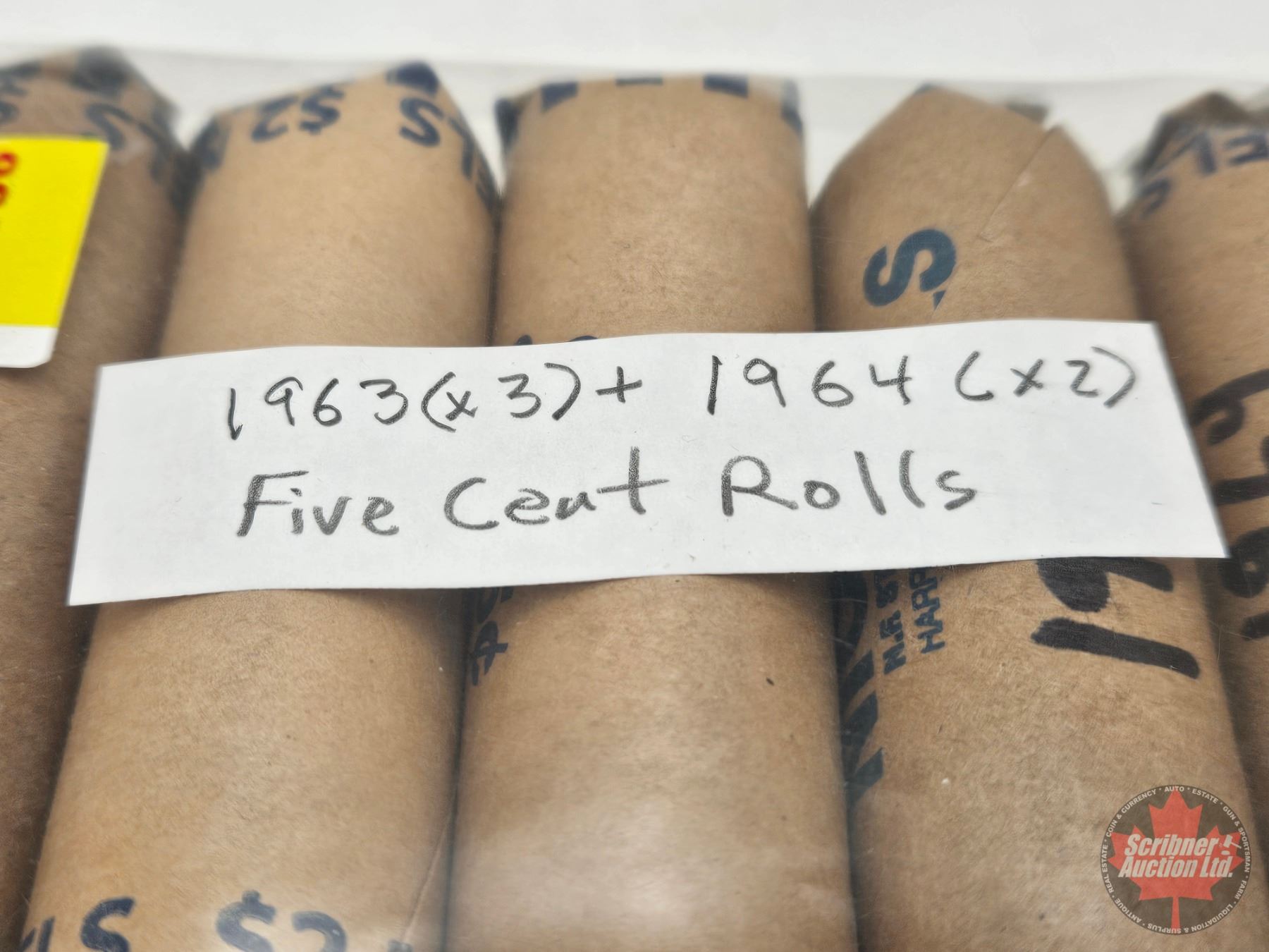 Canada Five Cent Rolls (5) : 1963 , 1964 (200 Coins)