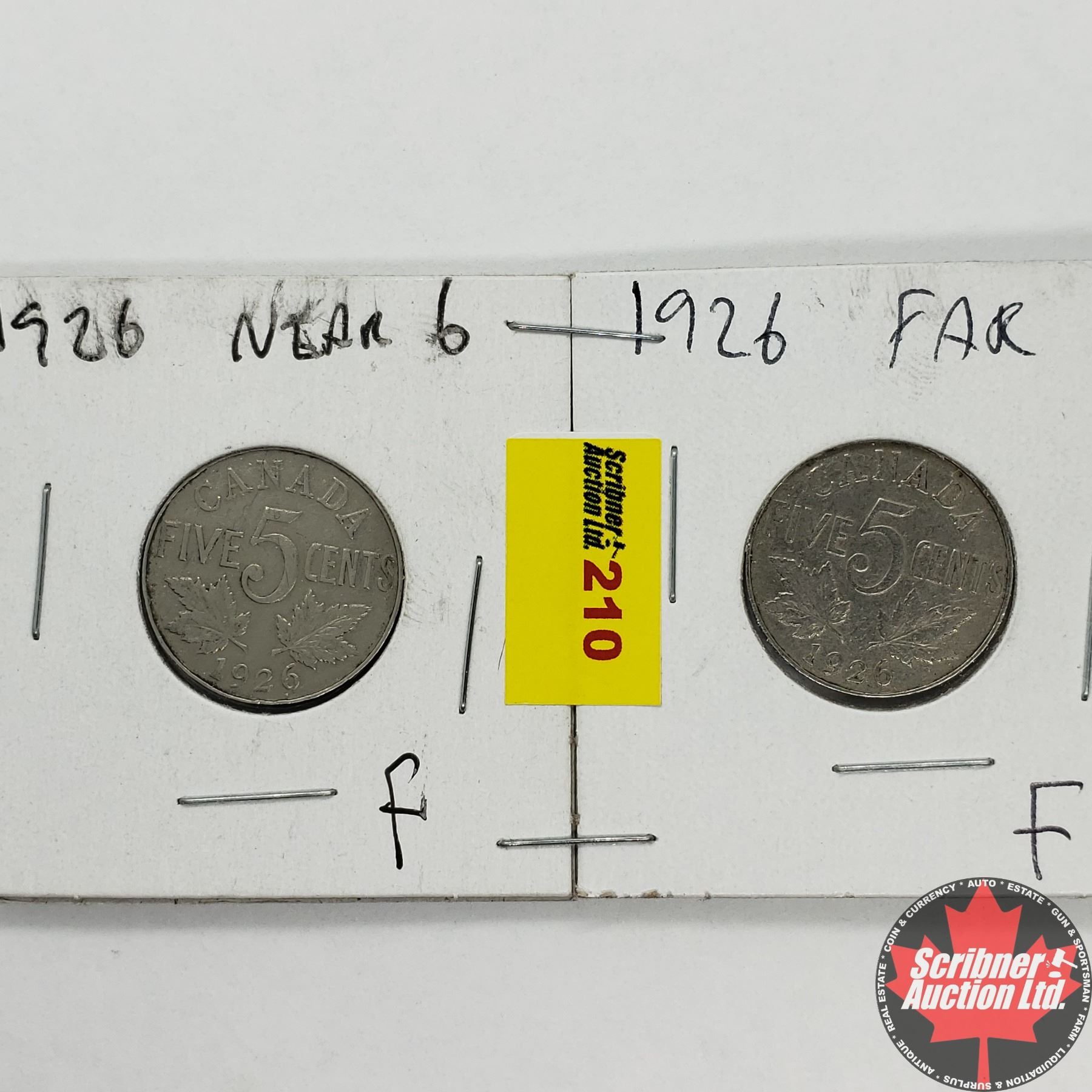 Canada Five Cent - Strip of 2: 1926 Near; 1926 Far
