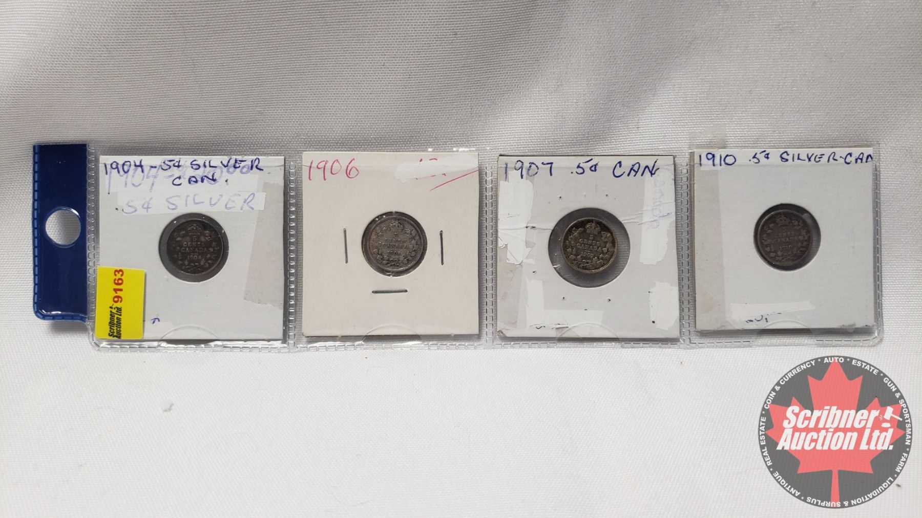 Canada Five Cent - Strip of 4: 1904; 1906; 1907; 1910