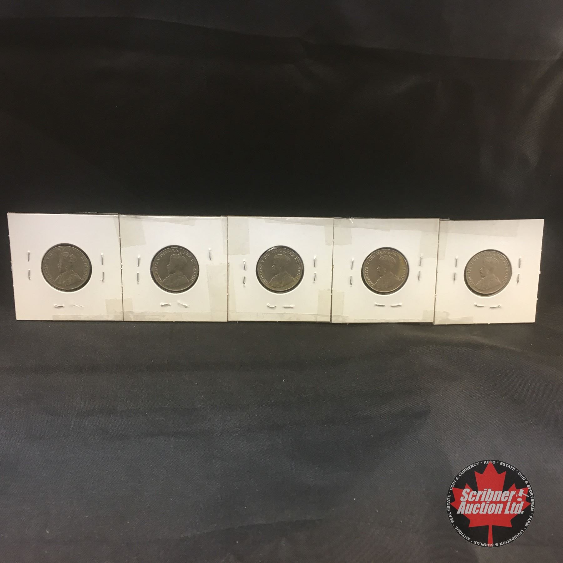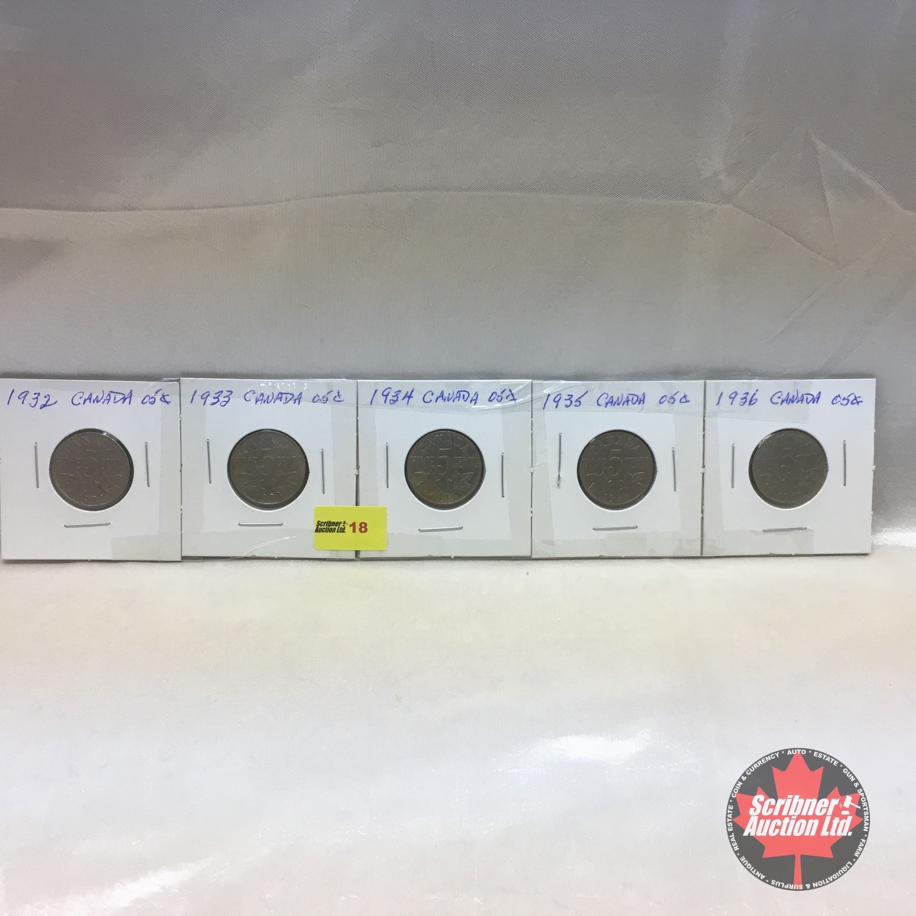 Canada Five Cent - Strip of 5: 1932; 1933; 1934; 1935; 1936