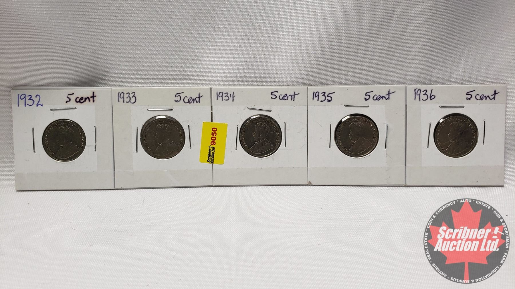 Canada Five Cent - Strip of 5: 1932; 1933; 1934; 1935; 1936