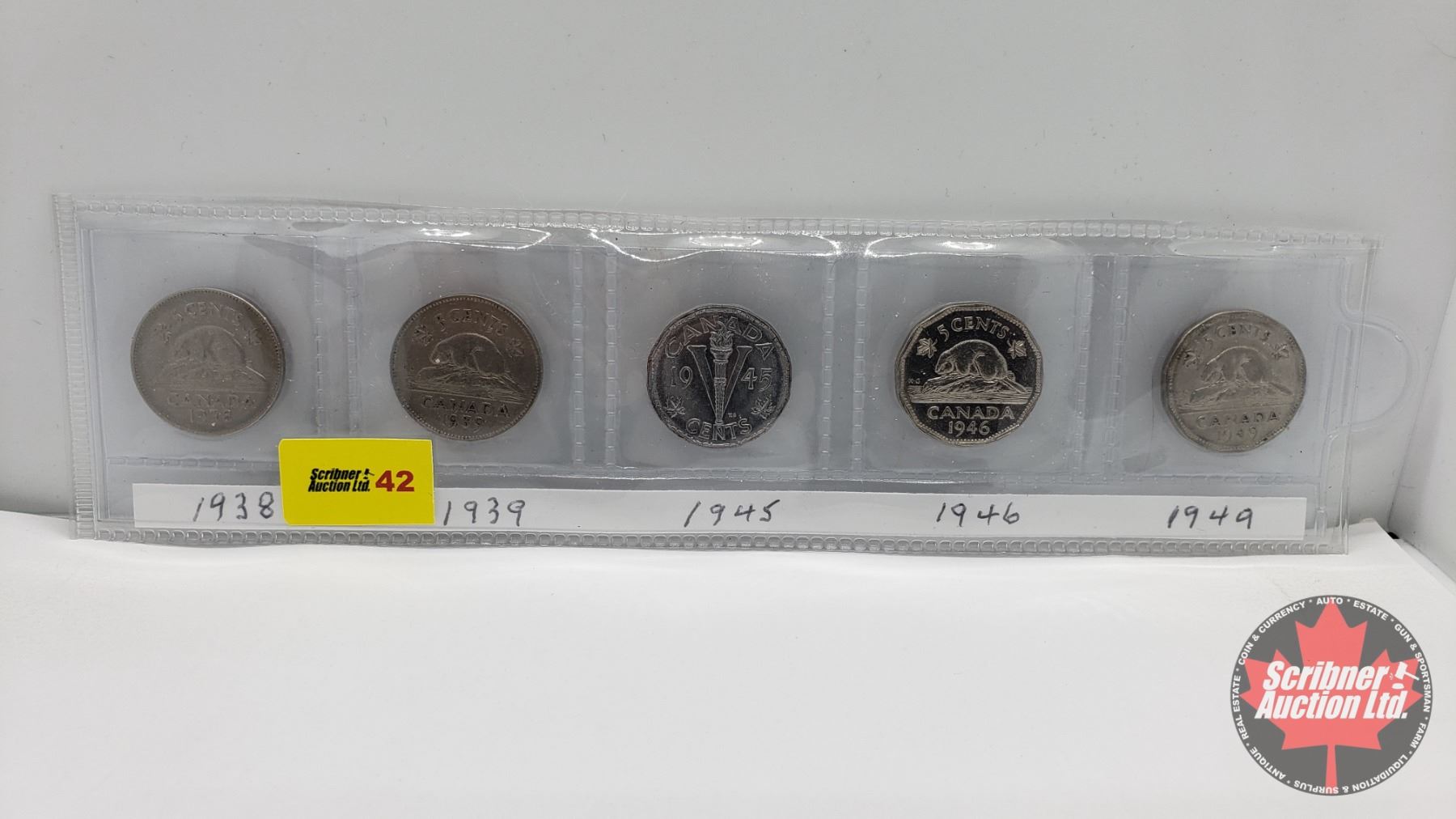 Canada Five Cent - Strip of 5: 1938; 1939; 1945; 1946; 1949